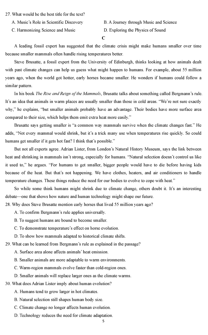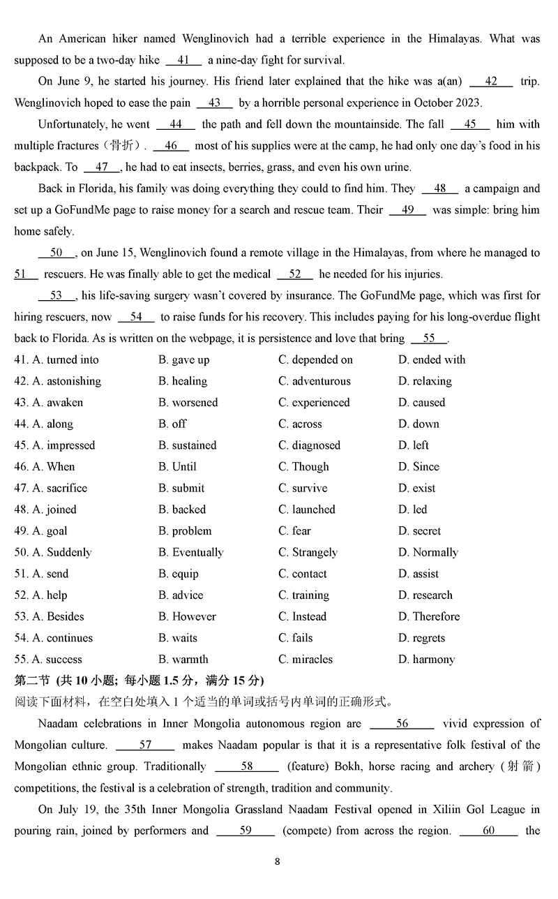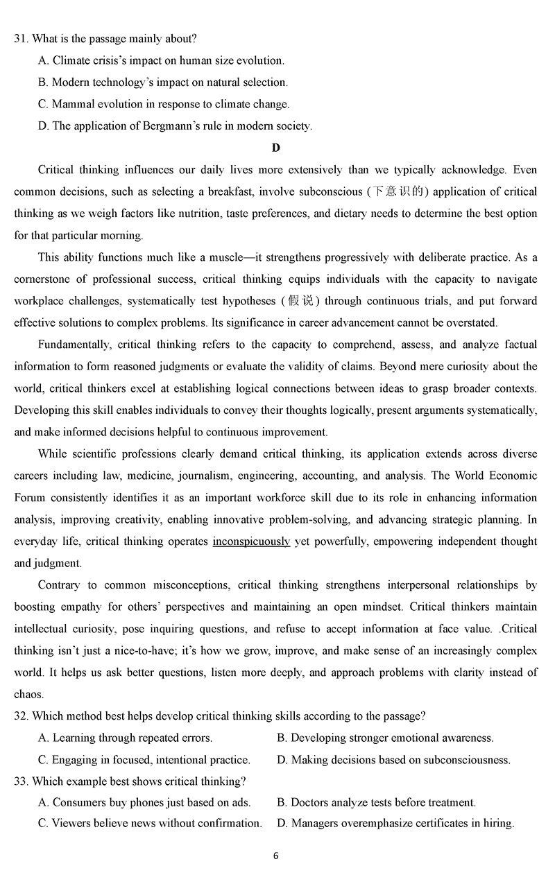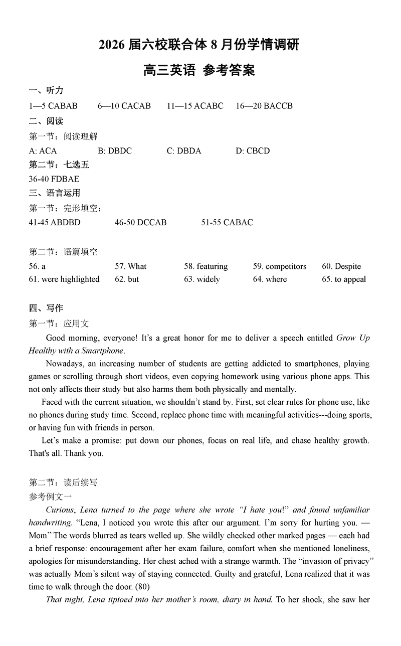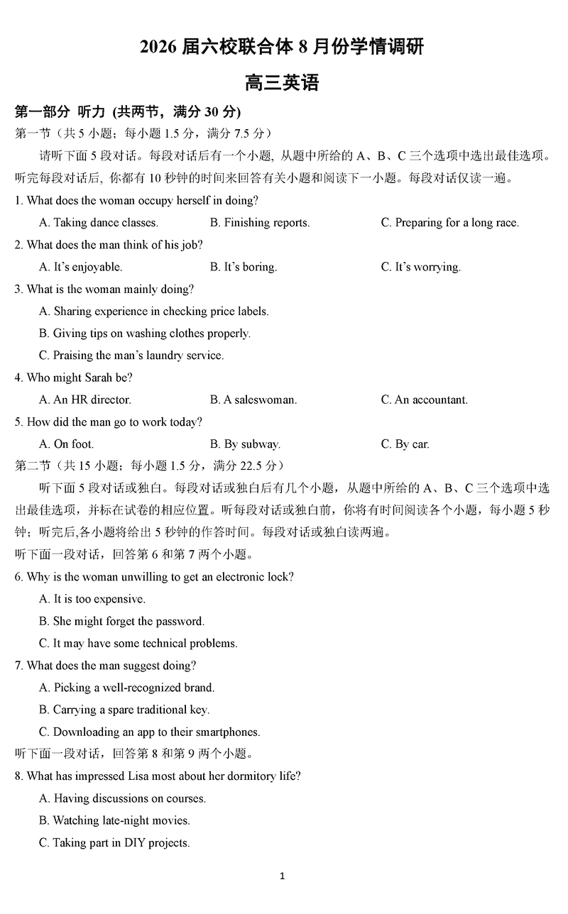 南京市六校联合体2026届高三上学期8月学情调研英语试题及答案