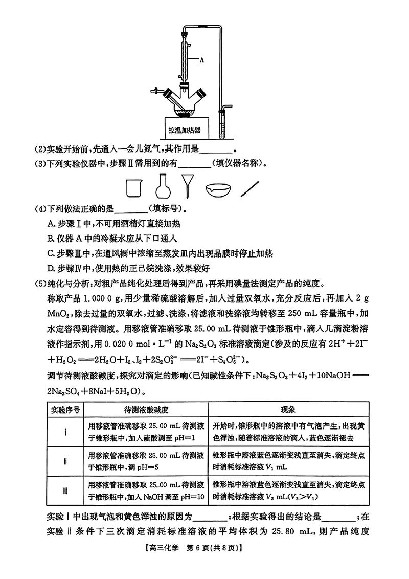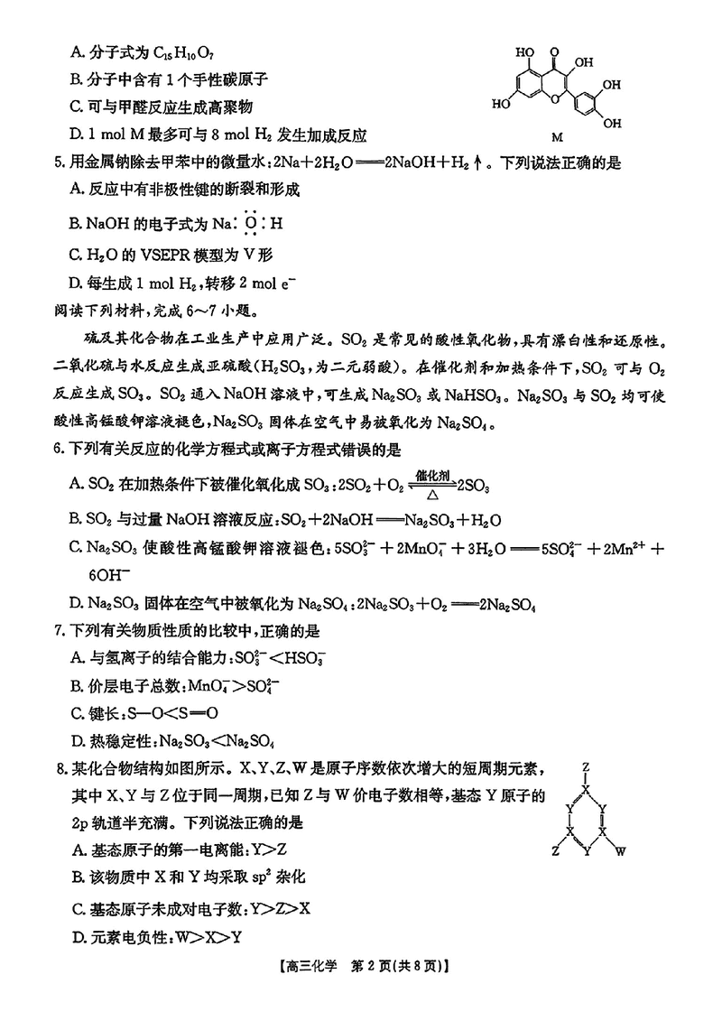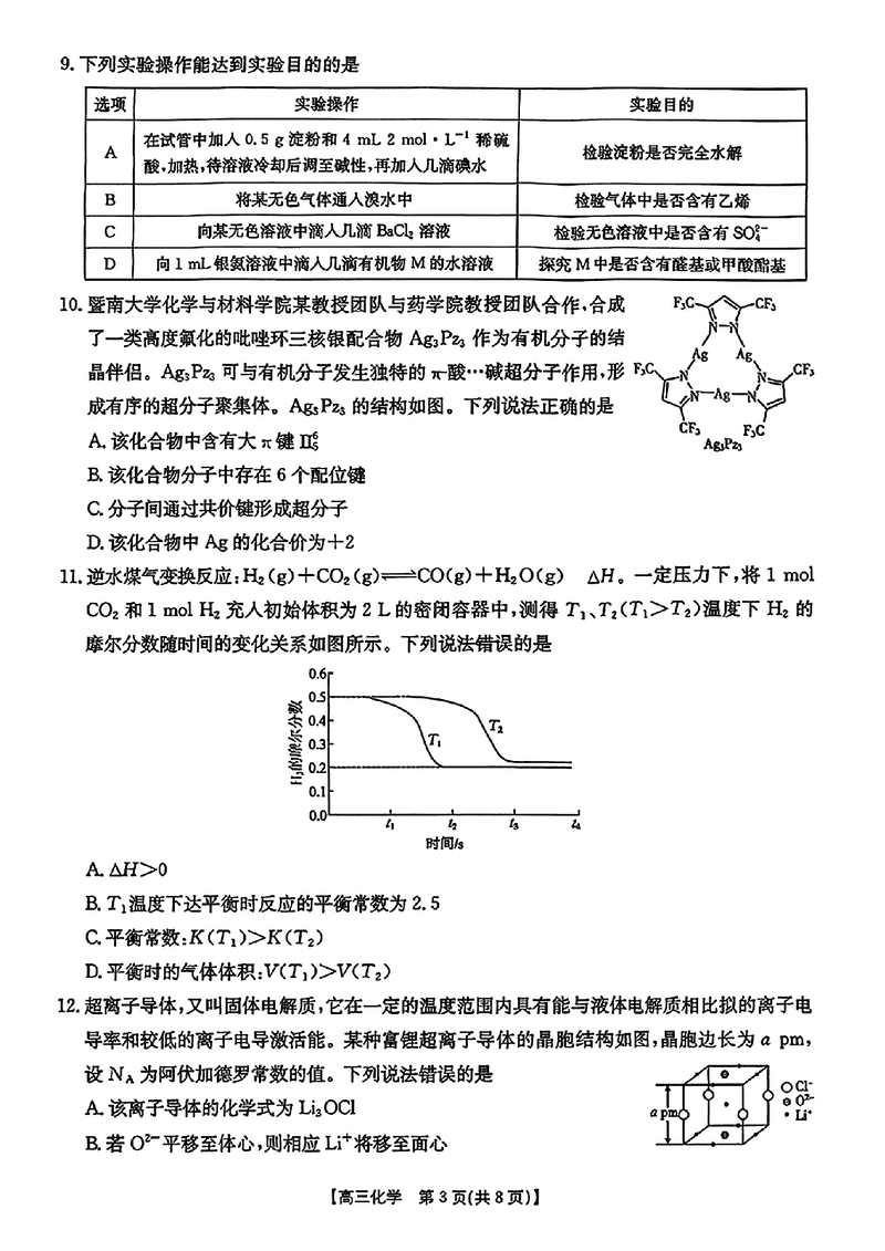 皖西南高中振兴发展联盟2026届高三起点考化学试题及答案
