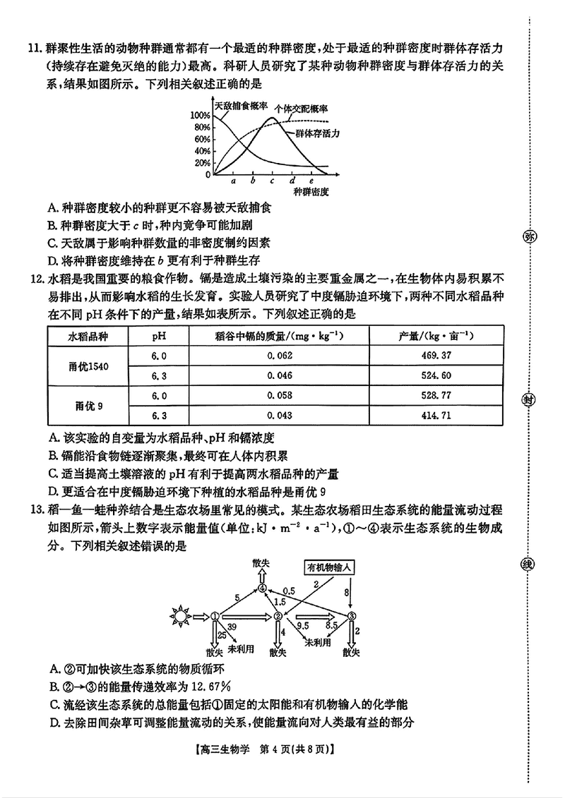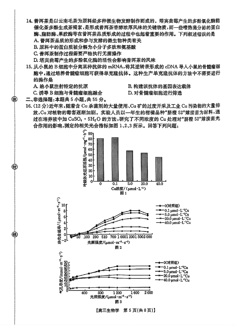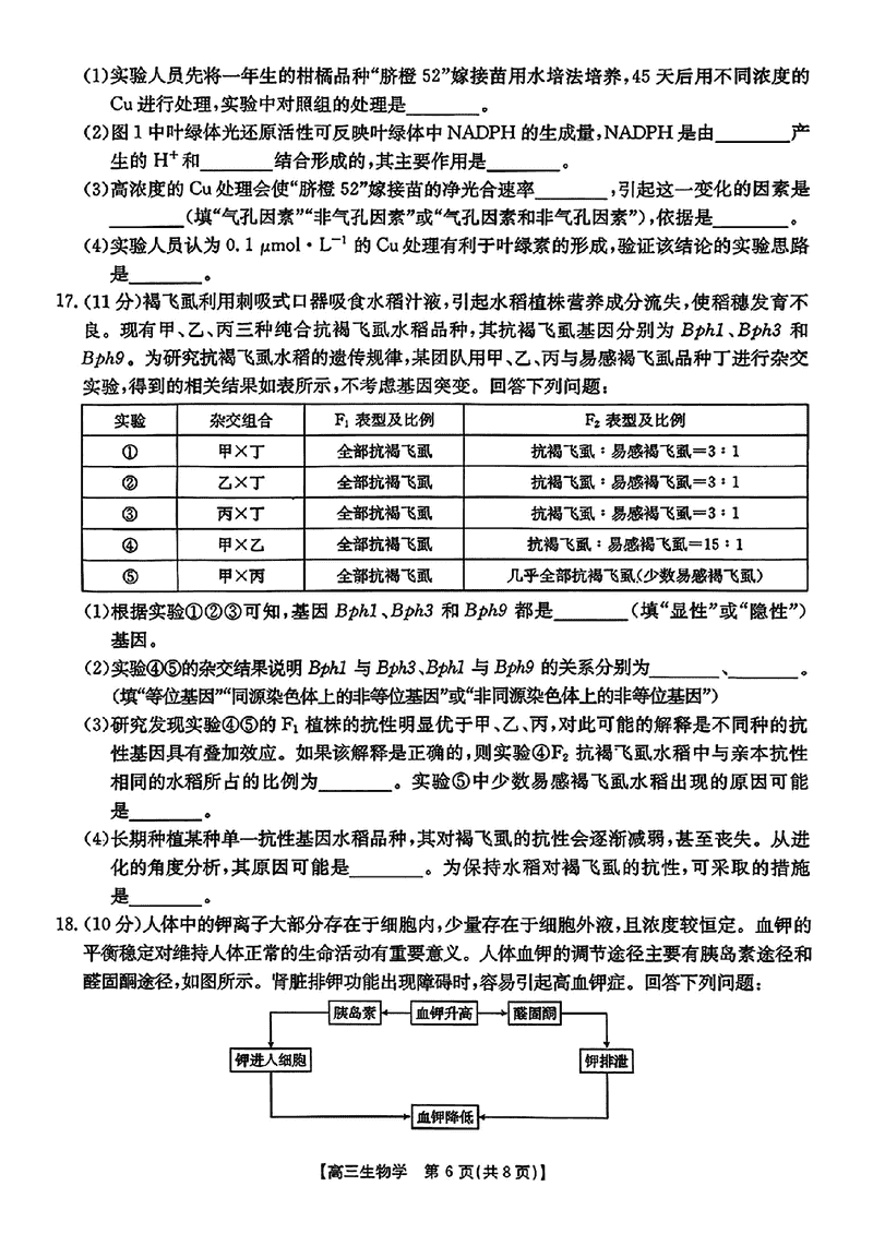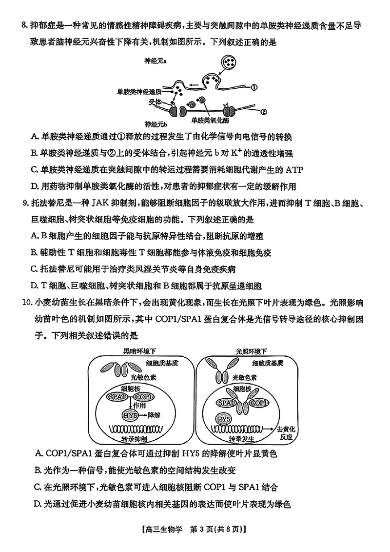 皖西南高中振兴发展联盟2026届高三起点考生物试题及答案