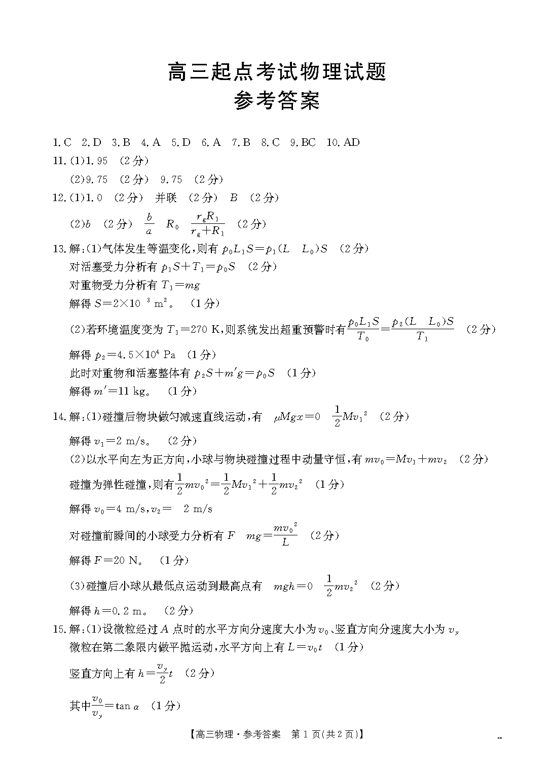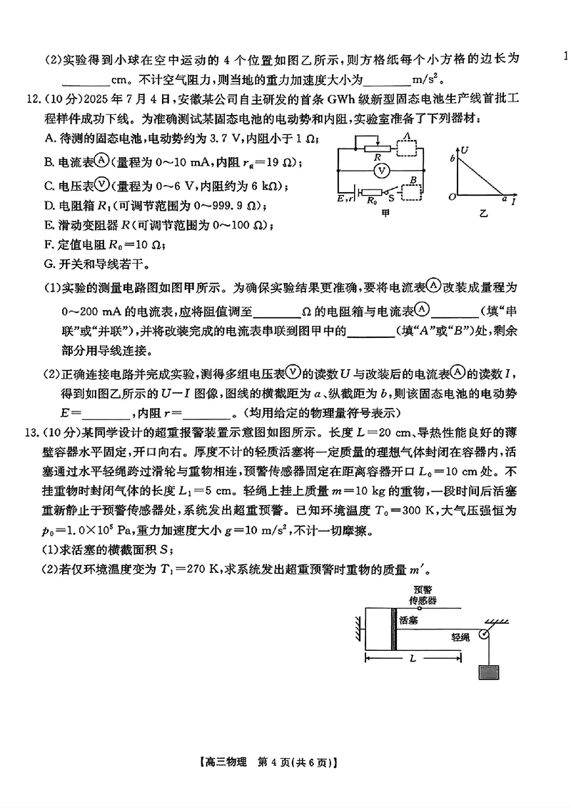 皖西南高中振兴发展联盟2026届高三起点考物理试题及答案