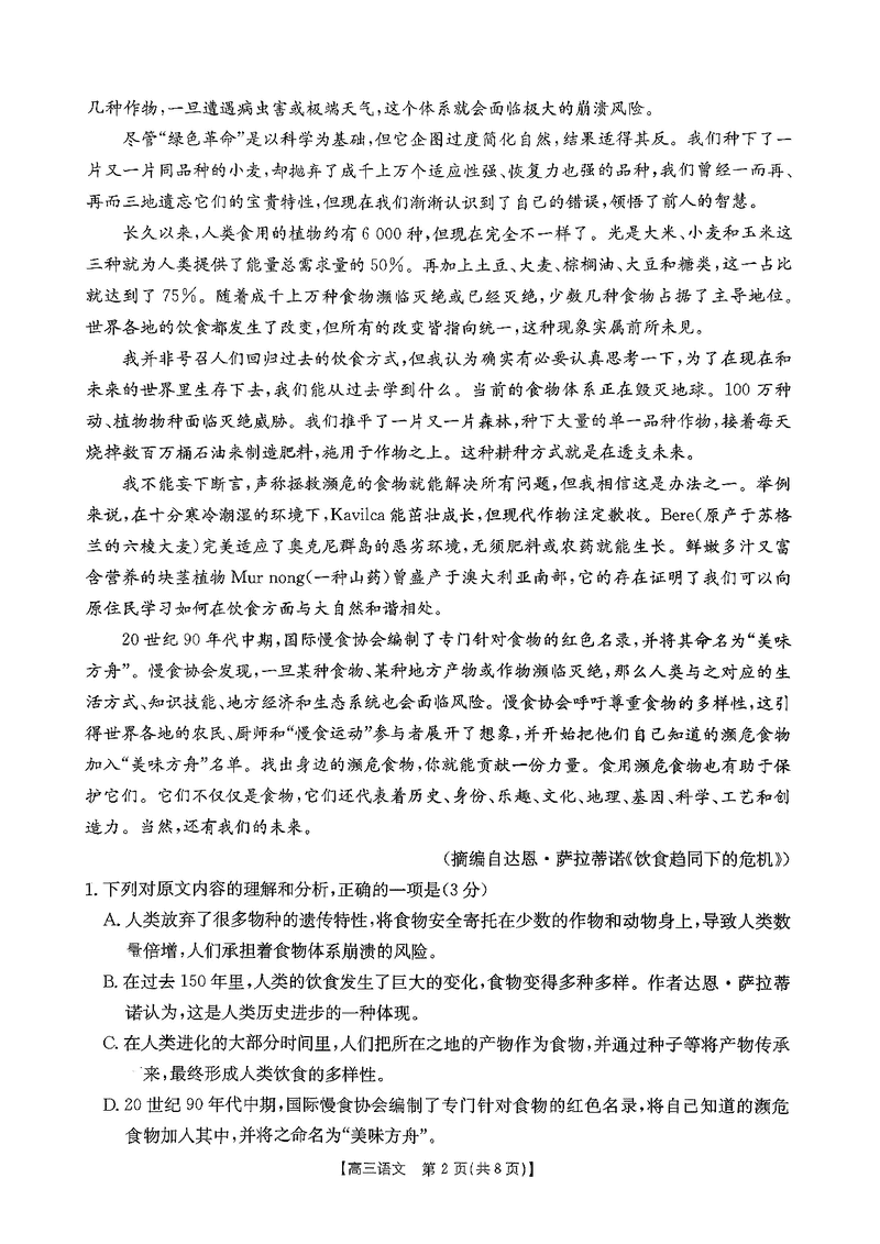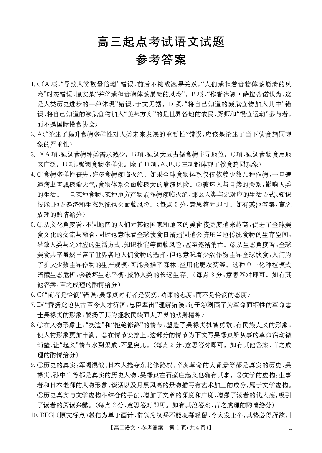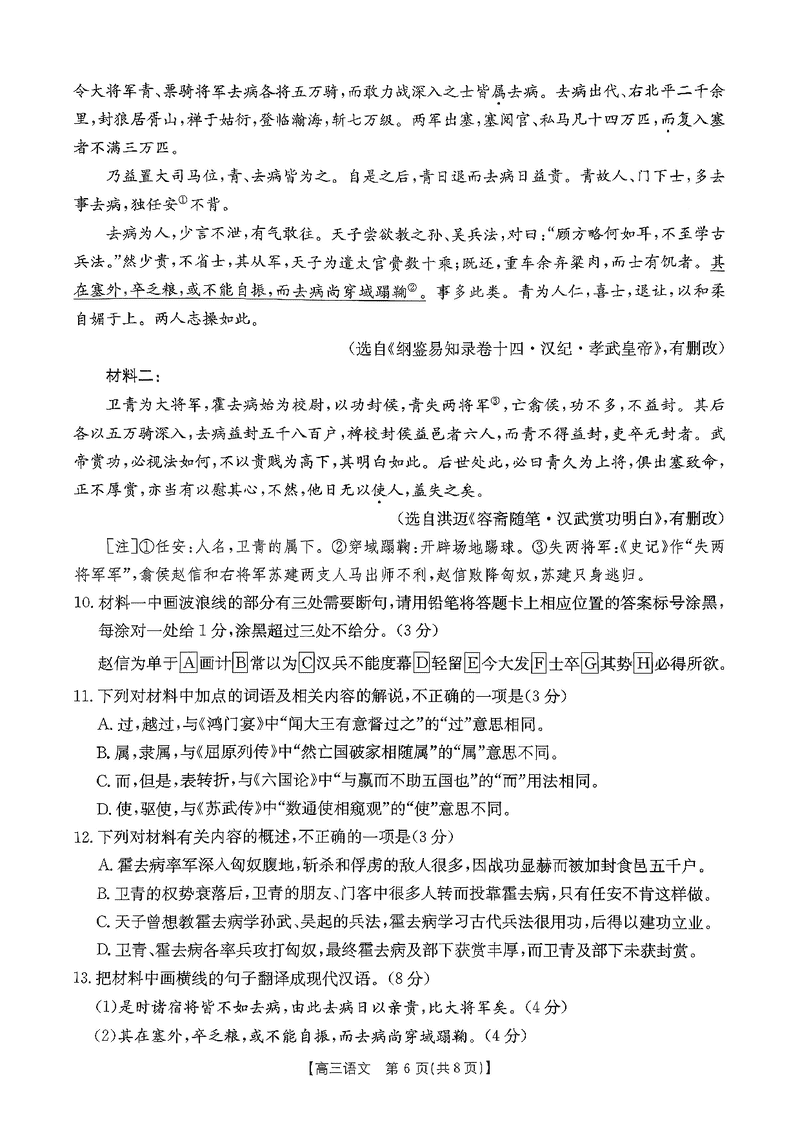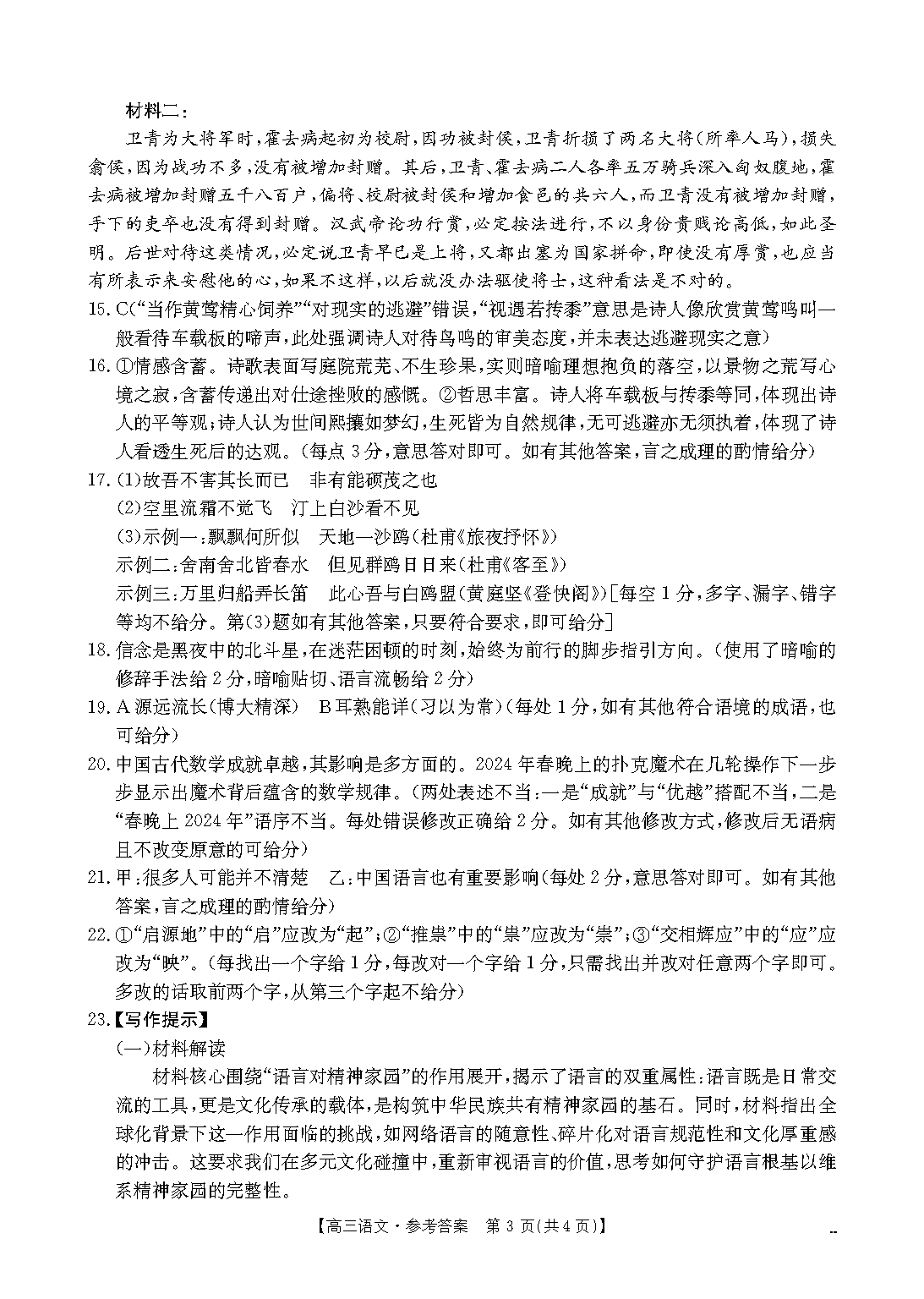 皖西南高中振兴发展联盟2026届高三起点考语文试题及答案