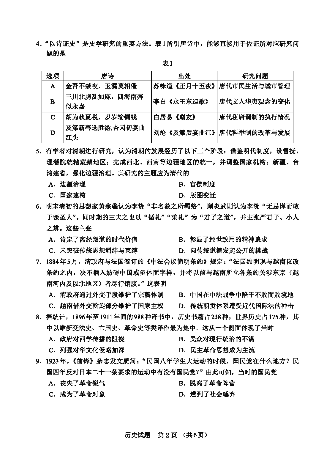 内蒙古-全国名校联盟2026届高三联合开学摸底历史试题及答案