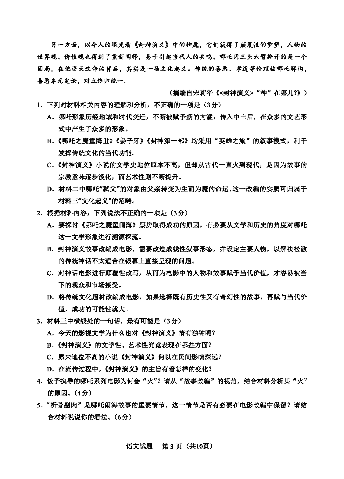 语文试题及答案解析