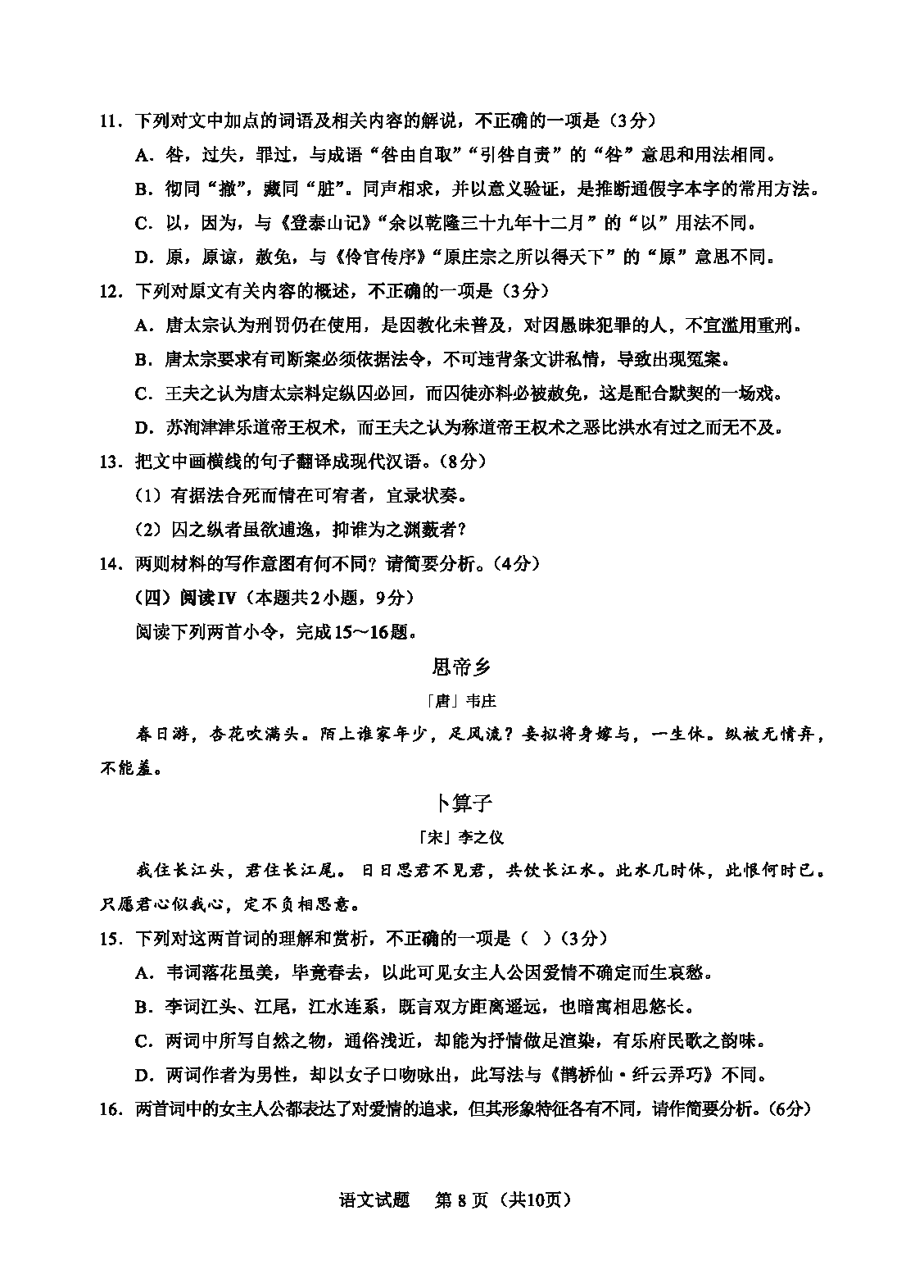 福建 语文试题