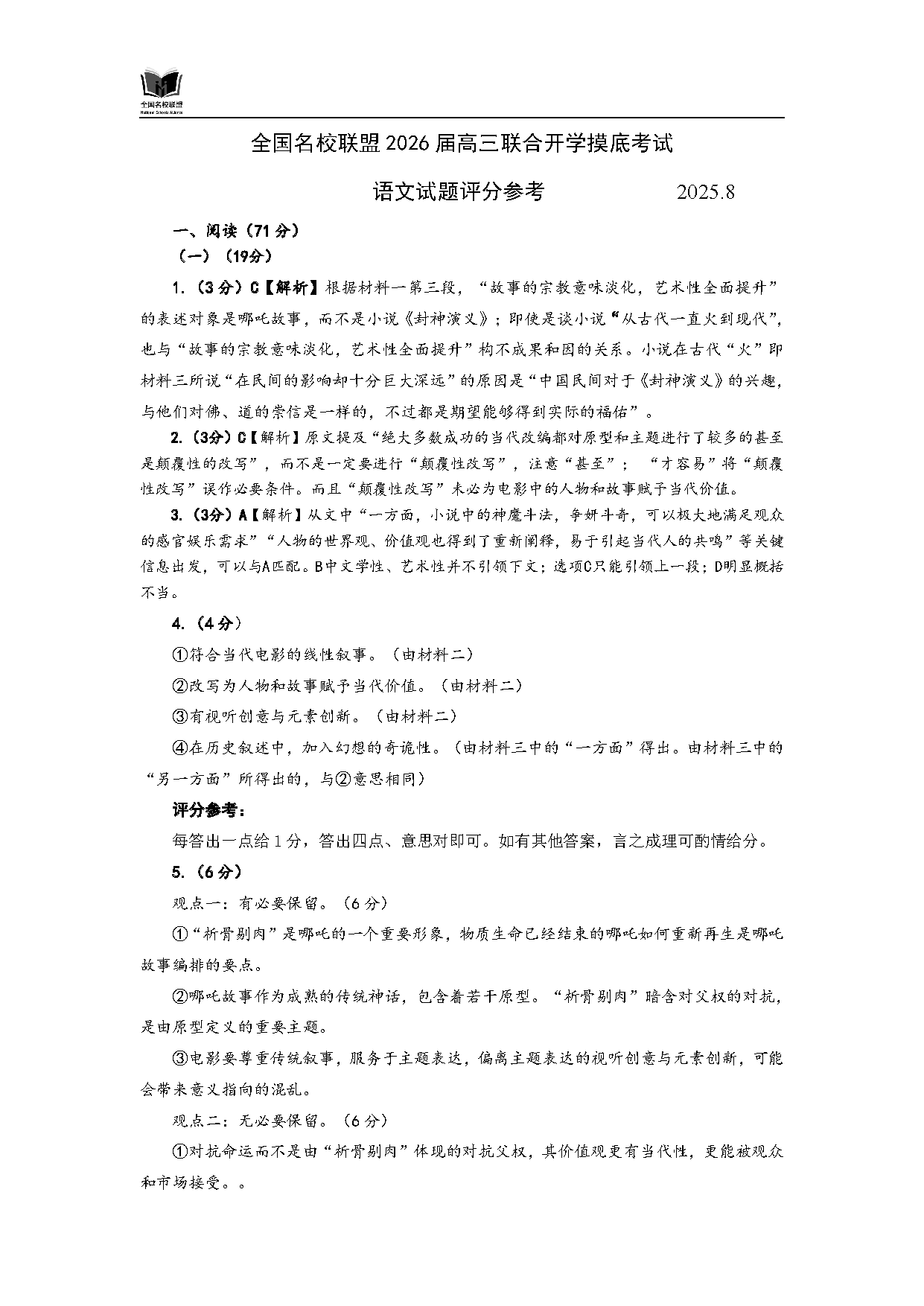 福建-全国名校联盟2026届高三联合开学摸底语文考试已于近日开考,为方便考生考后及时查看考试情况,查漏补缺、弥补不足,本文整理了试题答案解析相关信息!