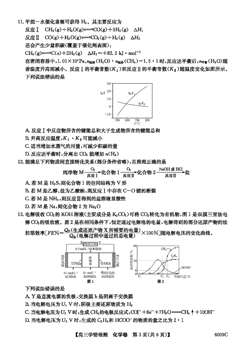 安徽县中联盟2026届高三上学期学情检测化学试题及答案