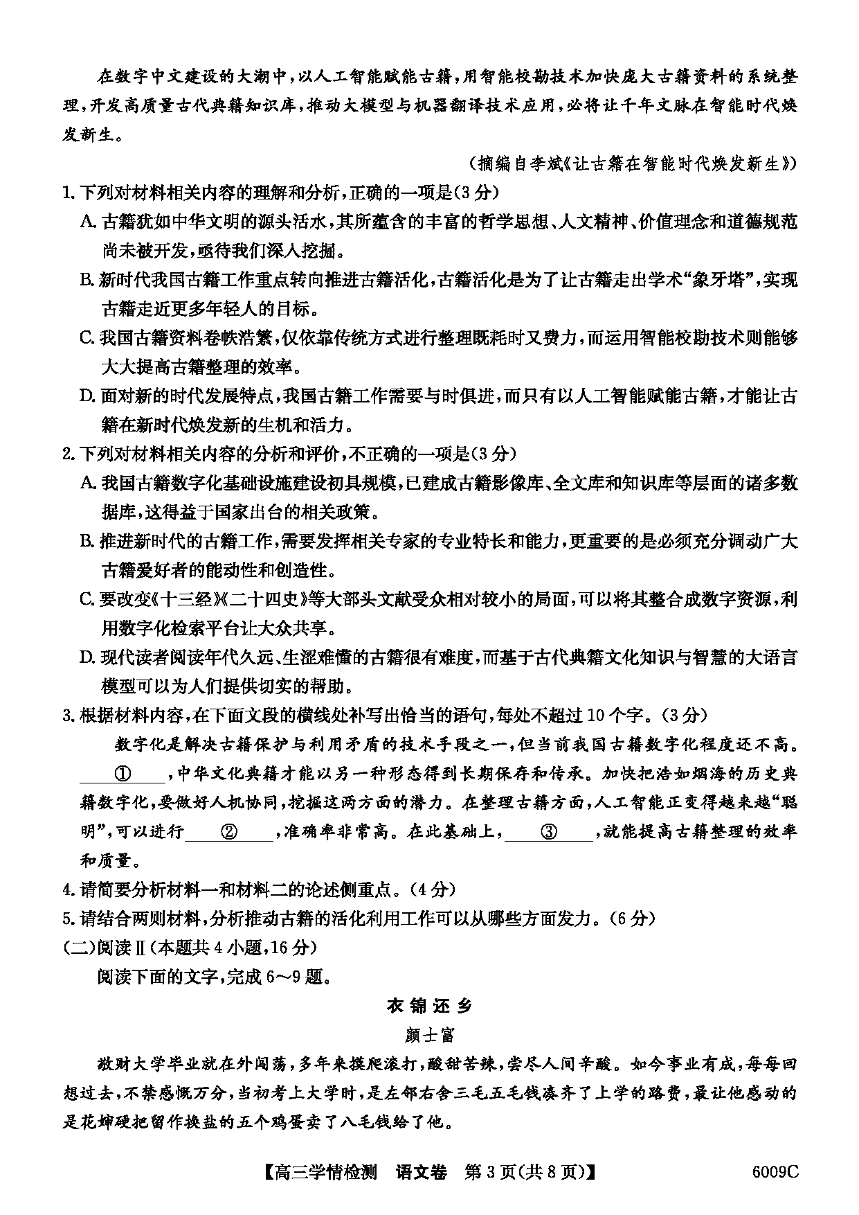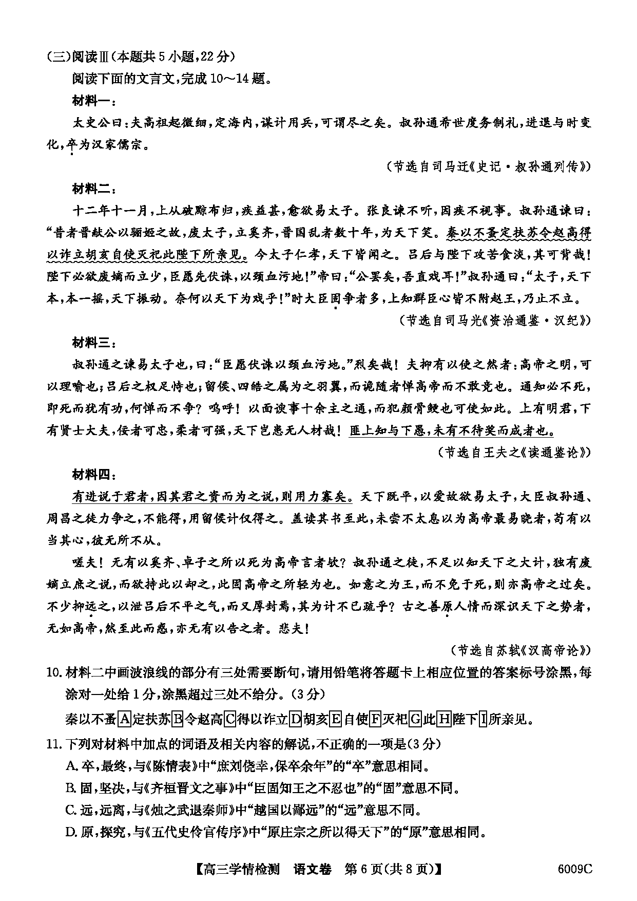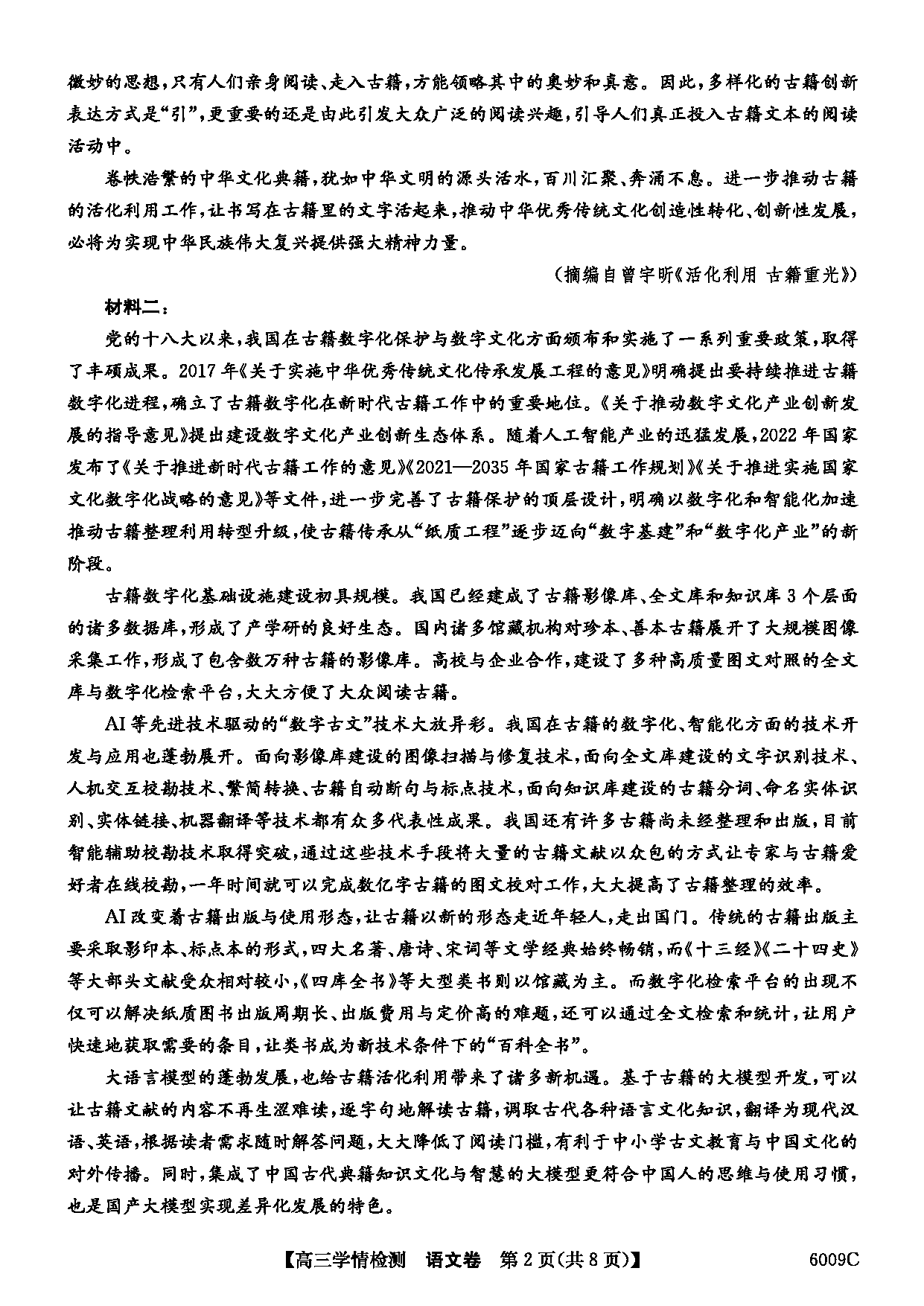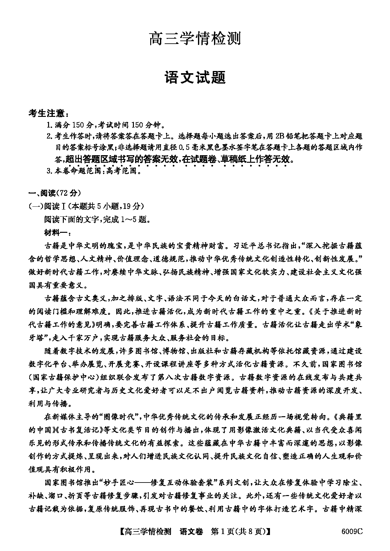 安徽县中联盟2026届高三上学期学情检测语文试题及答案