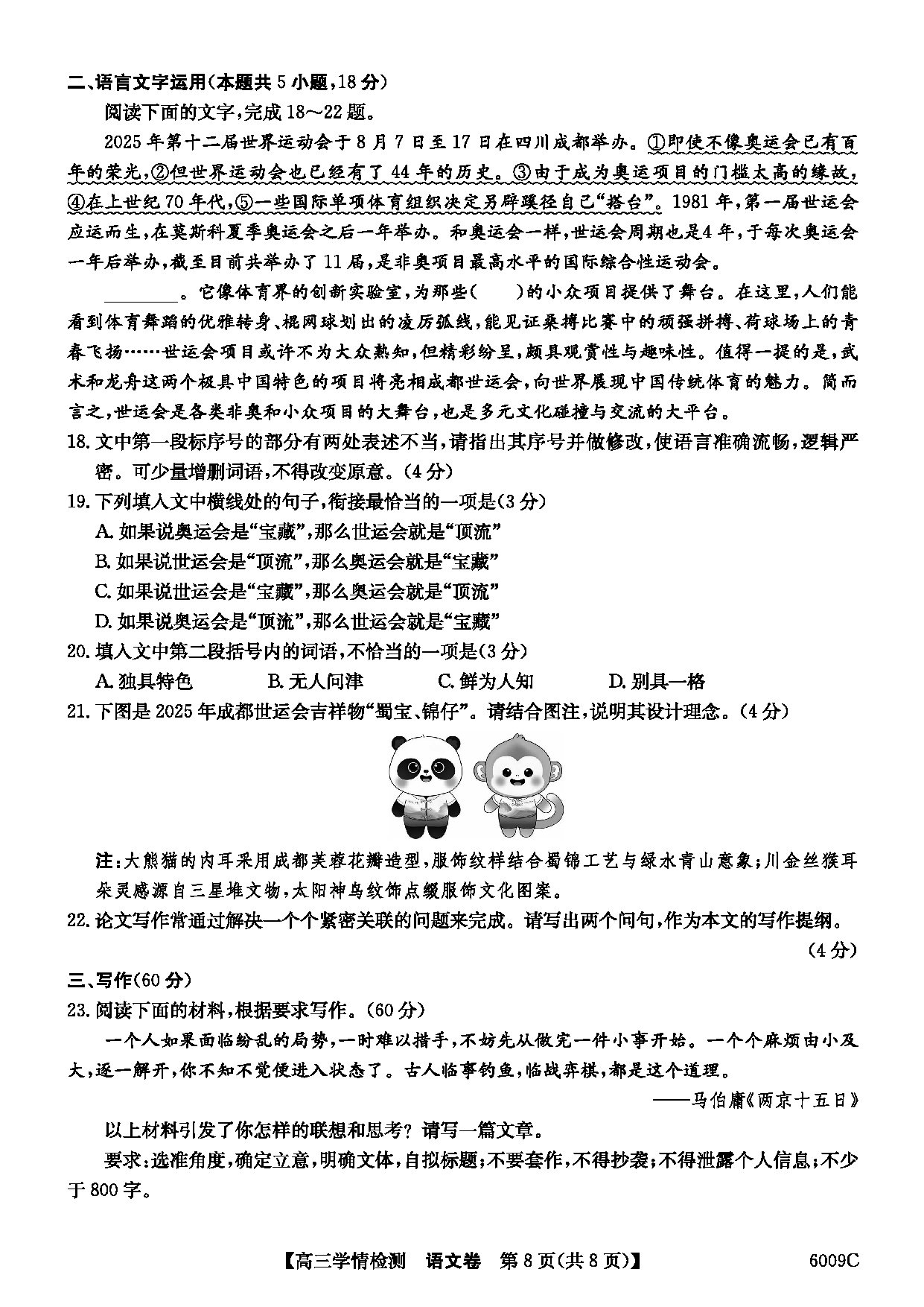 安徽县中联盟2026届高三上学期学情检测语文考试已于近日开考,为方便考生考后及时查看考试情况,查漏补缺、弥补不足,本文整理了试题答案解析相关信息!
