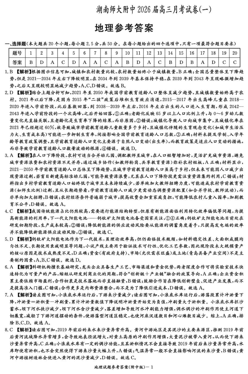 湖南师大附中2026届高三上学期8月月考(一)地理考试已于近日开考,为方便考生考后及时查看考试情况,查漏补缺、弥补不足,本文整理了试题答案解析相关信息!