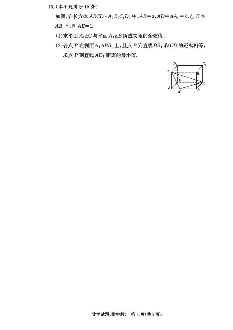湖南师大附中2026届高三上学期8月月考(一)数学试题及答案