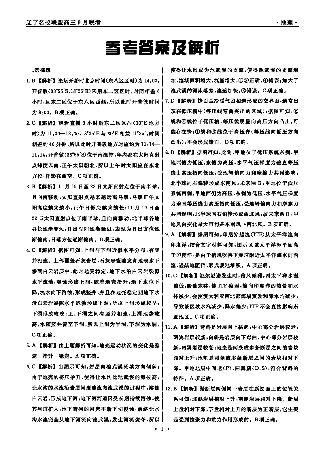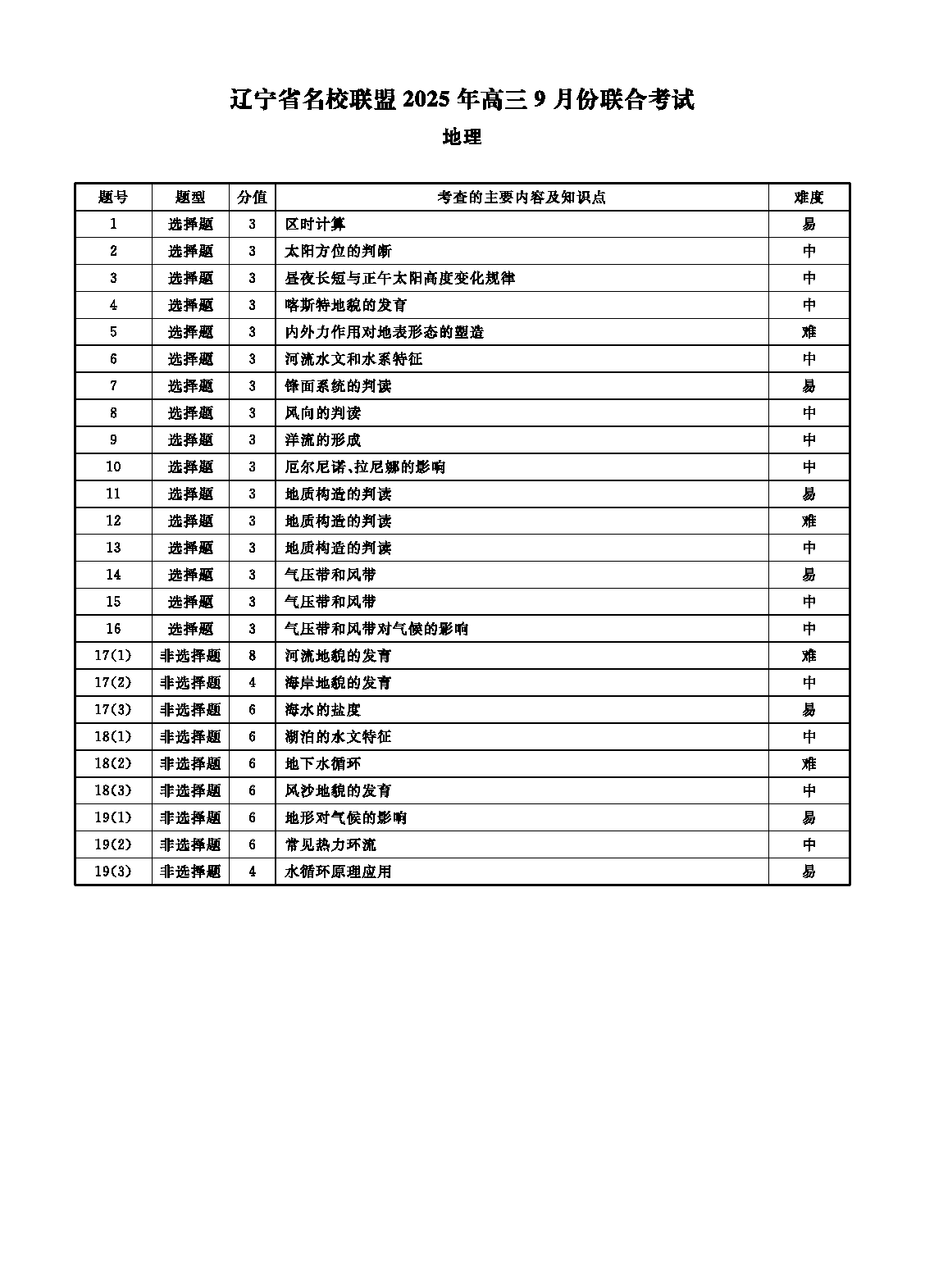 辽宁名校联盟2025年高三9月联考地理考试已于近日开考,为方便考生考后及时查看考试情况,查漏补缺、弥补不足,本文整理了试题答案解析相关信息!