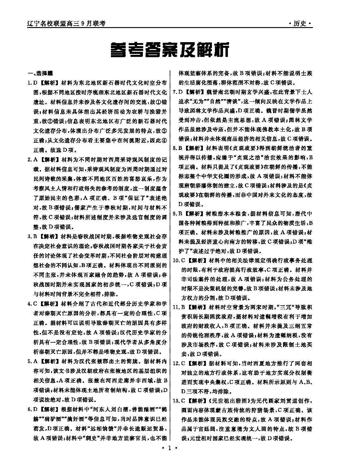 辽宁名校联盟2025年高三9月联考历史考试已于近日开考,为方便考生考后及时查看考试情况,查漏补缺、弥补不足,本文整理了试题答案解析相关信息!
