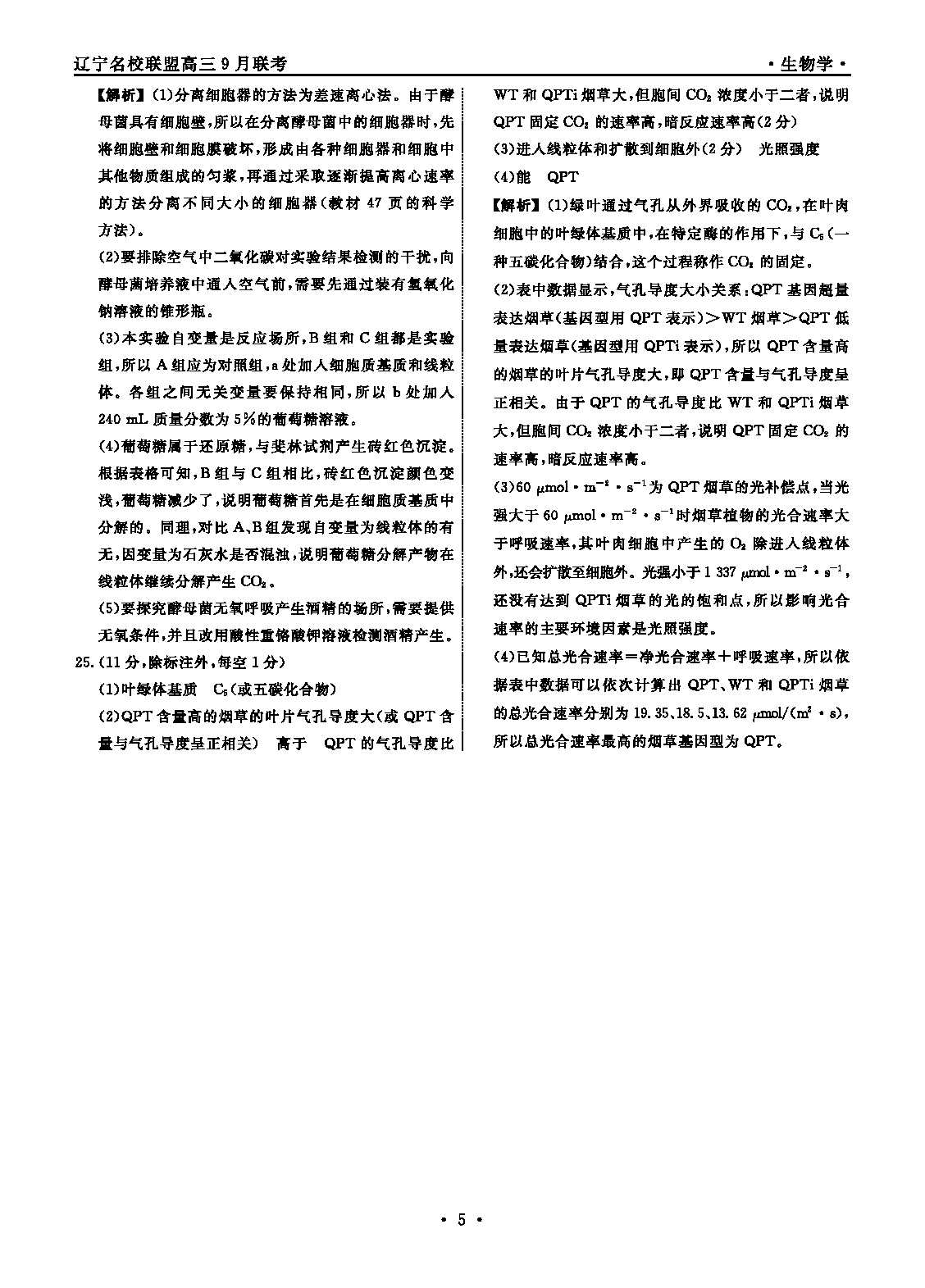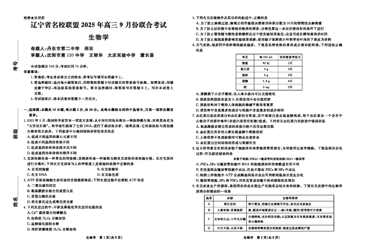辽宁名校联盟2025年高三9月联考生物考试已于近日开考,为方便考生考后及时查看考试情况,查漏补缺、弥补不足,本文整理了试题答案解析相关信息!