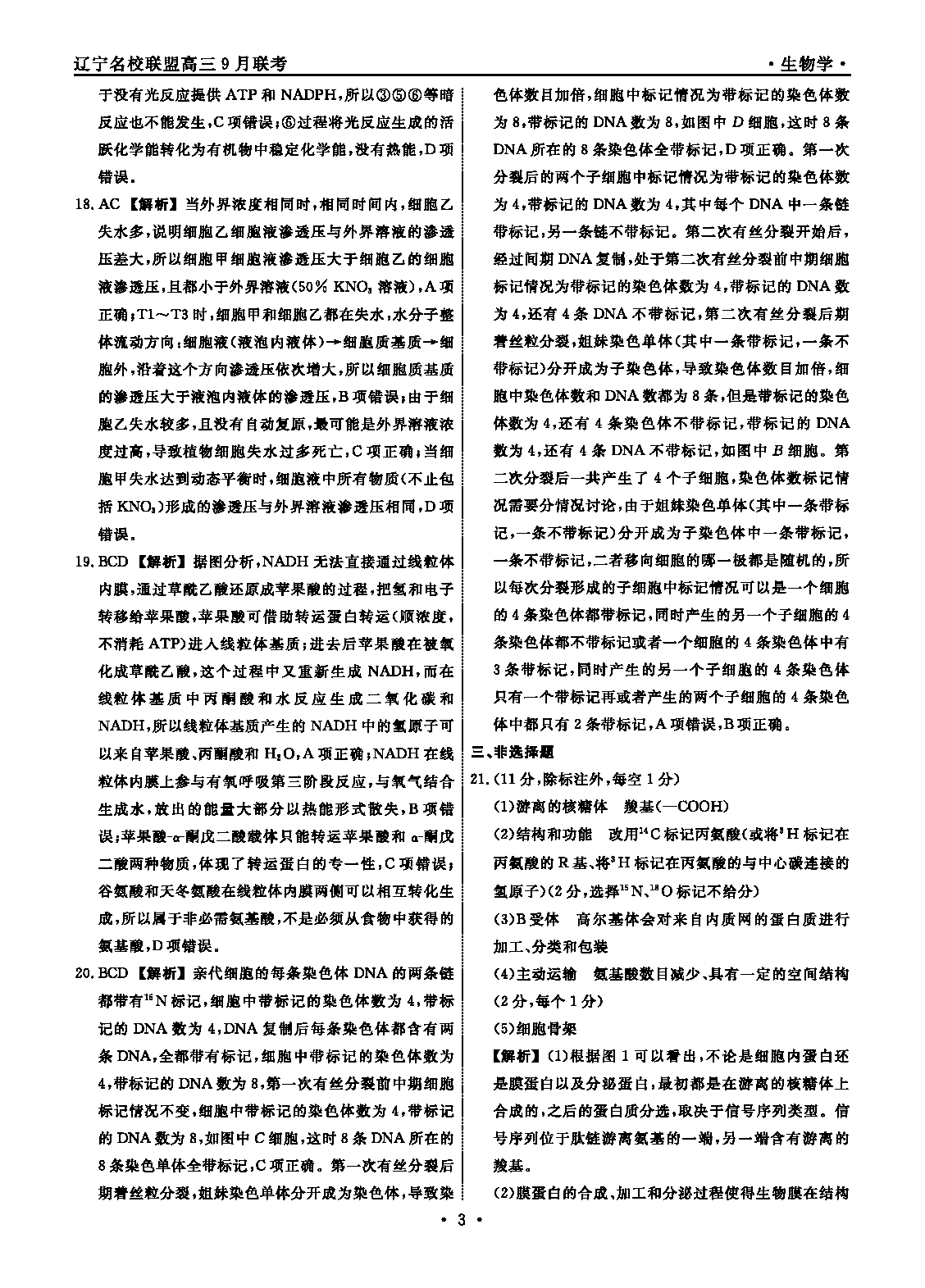 辽宁名校联盟2025年高三9月联考生物试题及答案