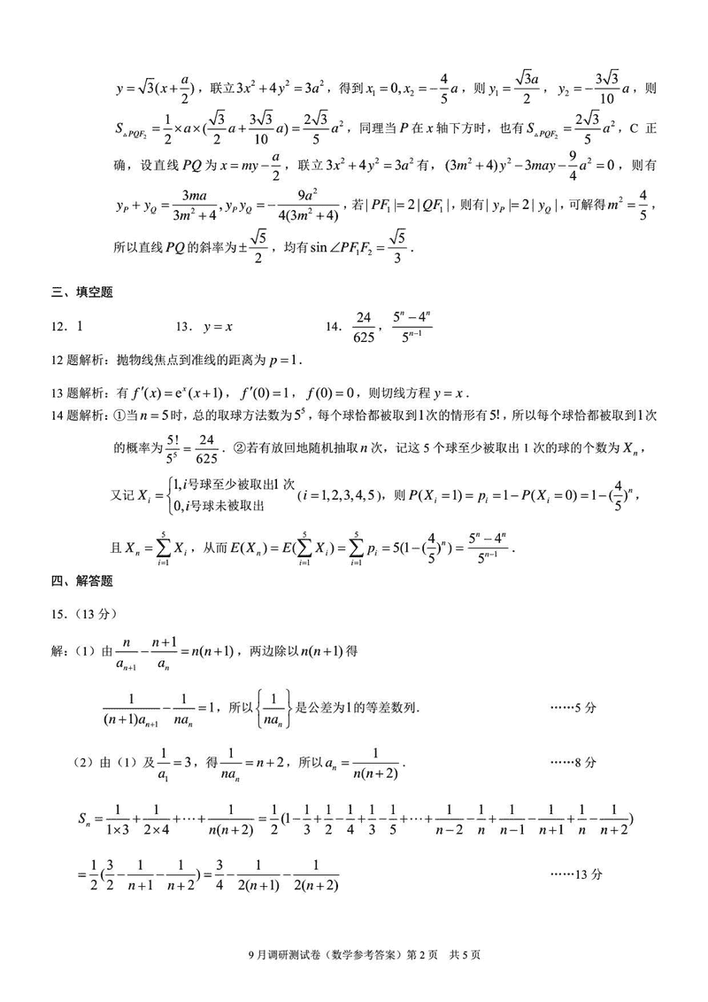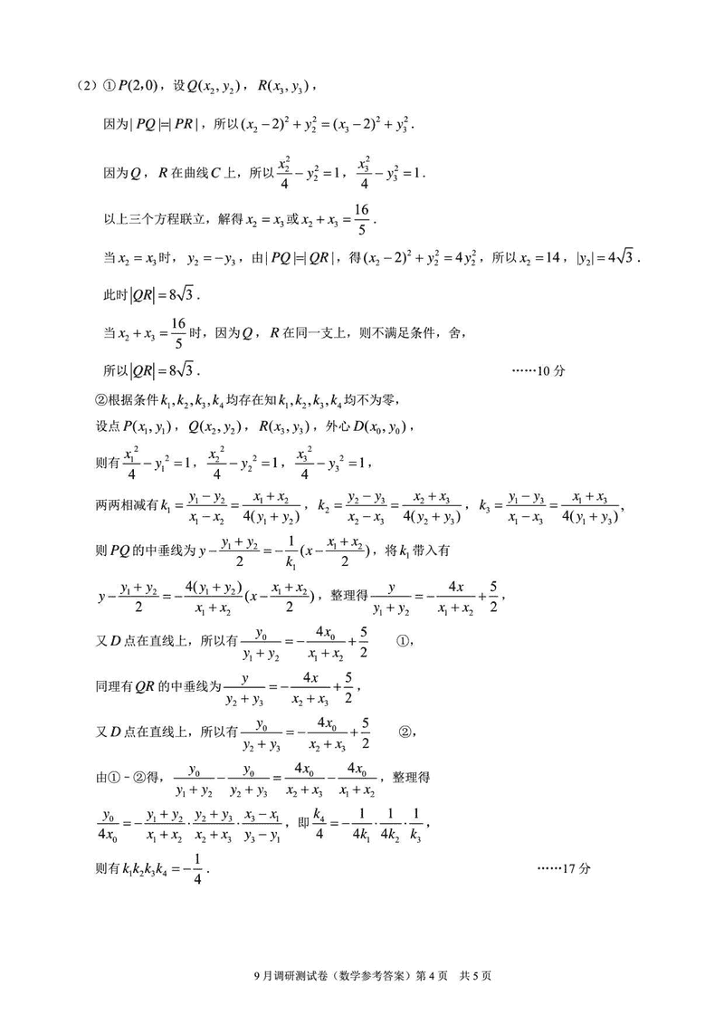 重庆康德卷2026年高三上学期9月调研数学试题及答案