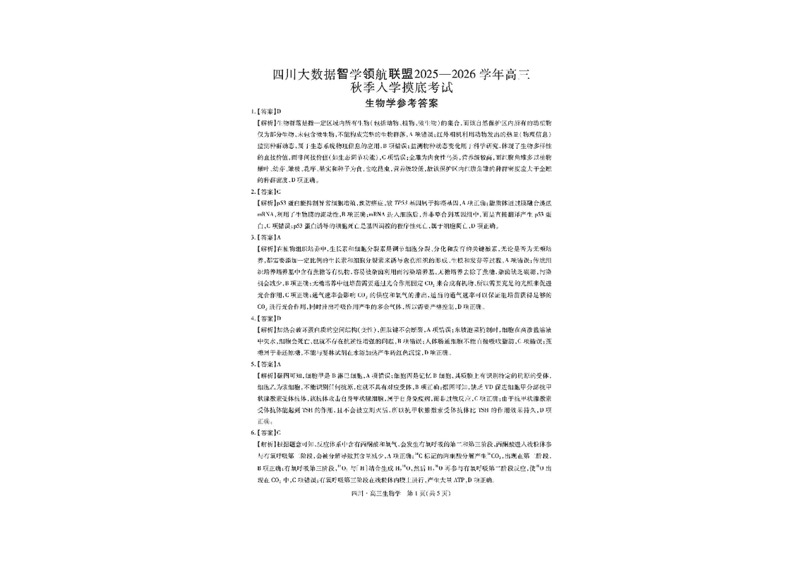 四川大数据智学领航联盟2025-2026学年高三秋入学摸底生物考试已于近日开考,为方便考生考后及时查看考试情况,查漏补缺、弥补不足,本文整理了试题答案解析相关信息!