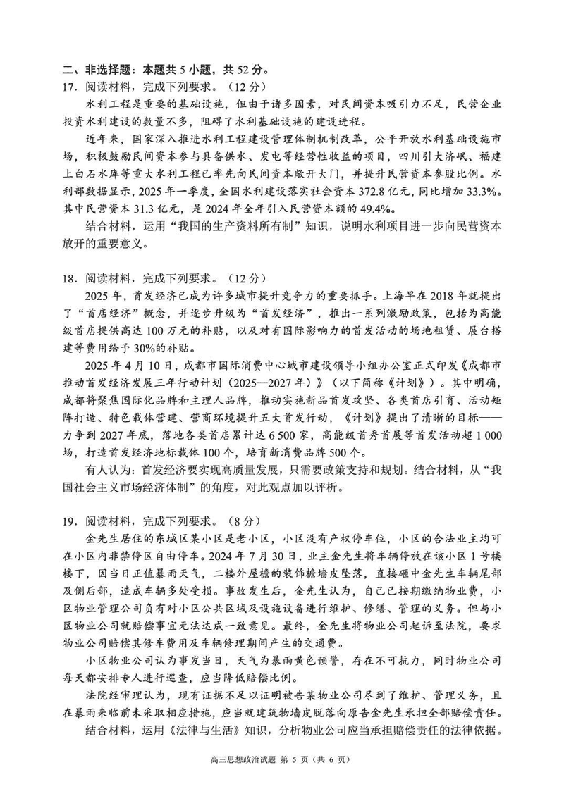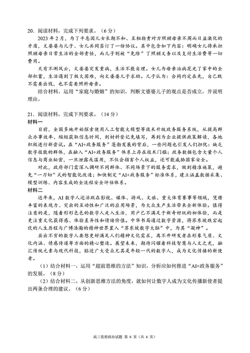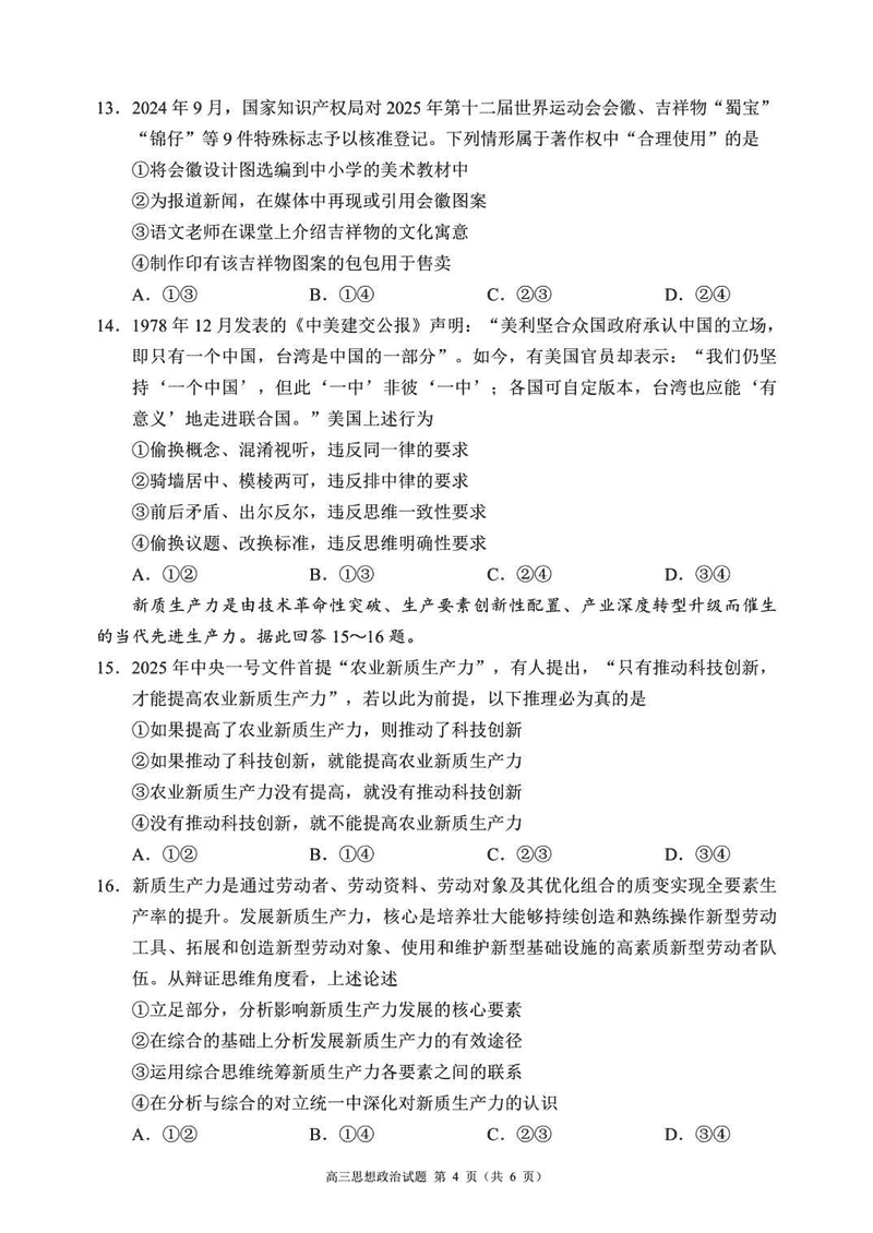 四川蓉城名校联盟2025-2026学年高三上学期开学摸底政治试题及答案