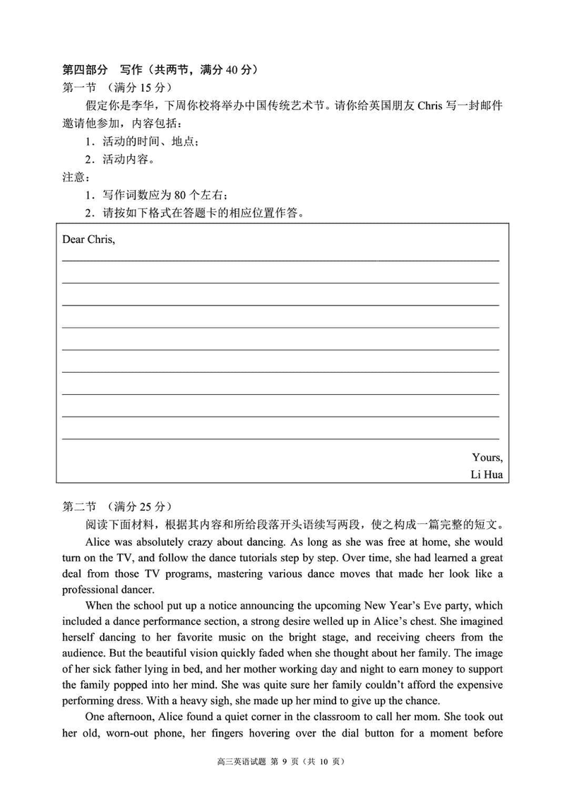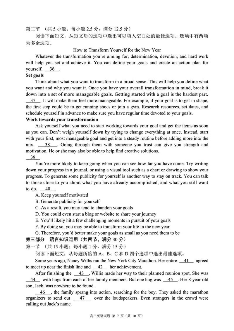 四川蓉城名校联盟2025-2026学年高三上学期开学摸底英语试题及答案