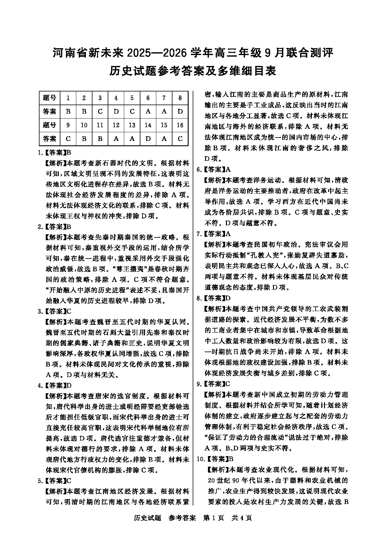 河南新未来2025-2026学年高三上9月联合测评历史考试已于近日开考,为方便考生考后及时查看考试情况,查漏补缺、弥补不足,本文整理了试题答案解析相关信息!