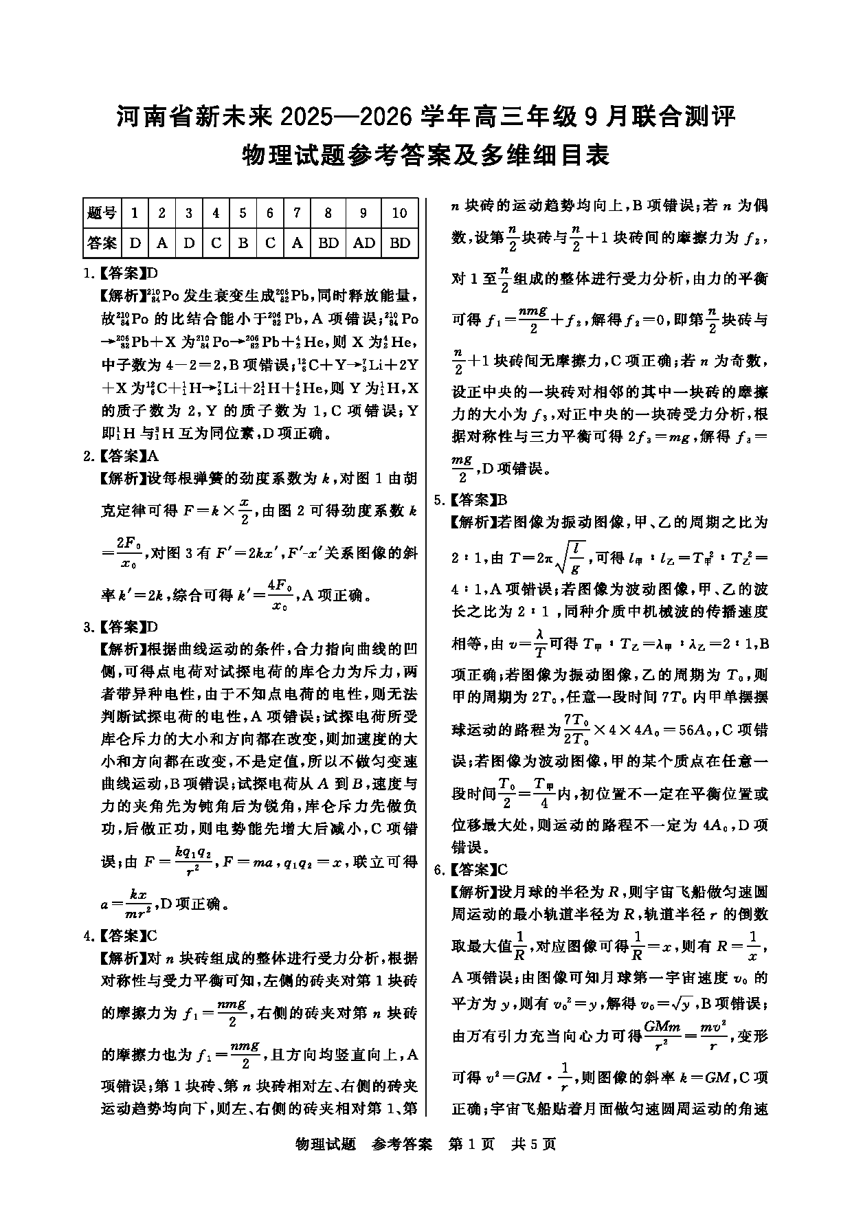 河南新未来2025-2026学年高三上9月联合测评物理考试已于近日开考,为方便考生考后及时查看考试情况,查漏补缺、弥补不足,本文整理了试题答案解析相关信息!