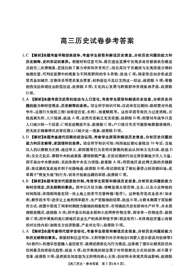 江西金太阳2025-2026学年高三上学期9月联考历史试题及答案