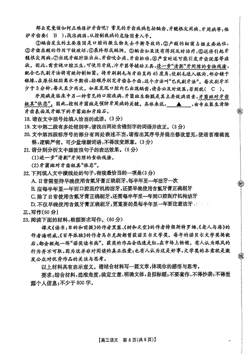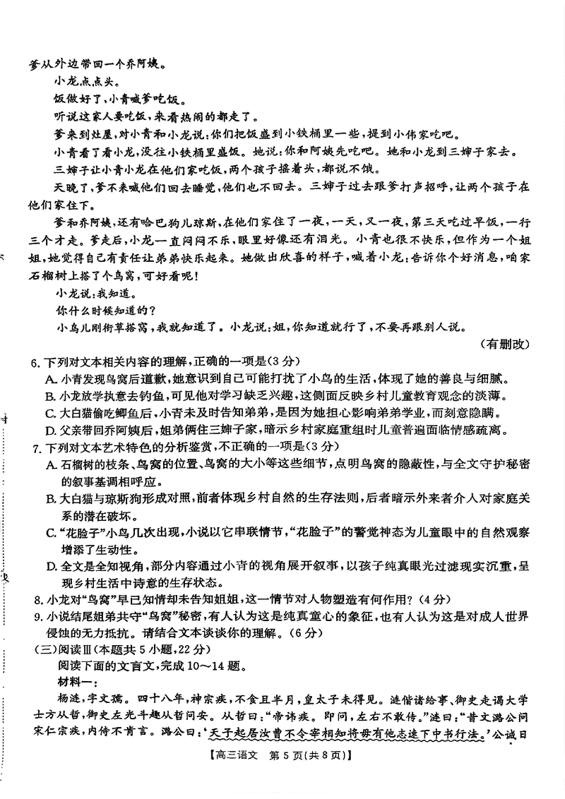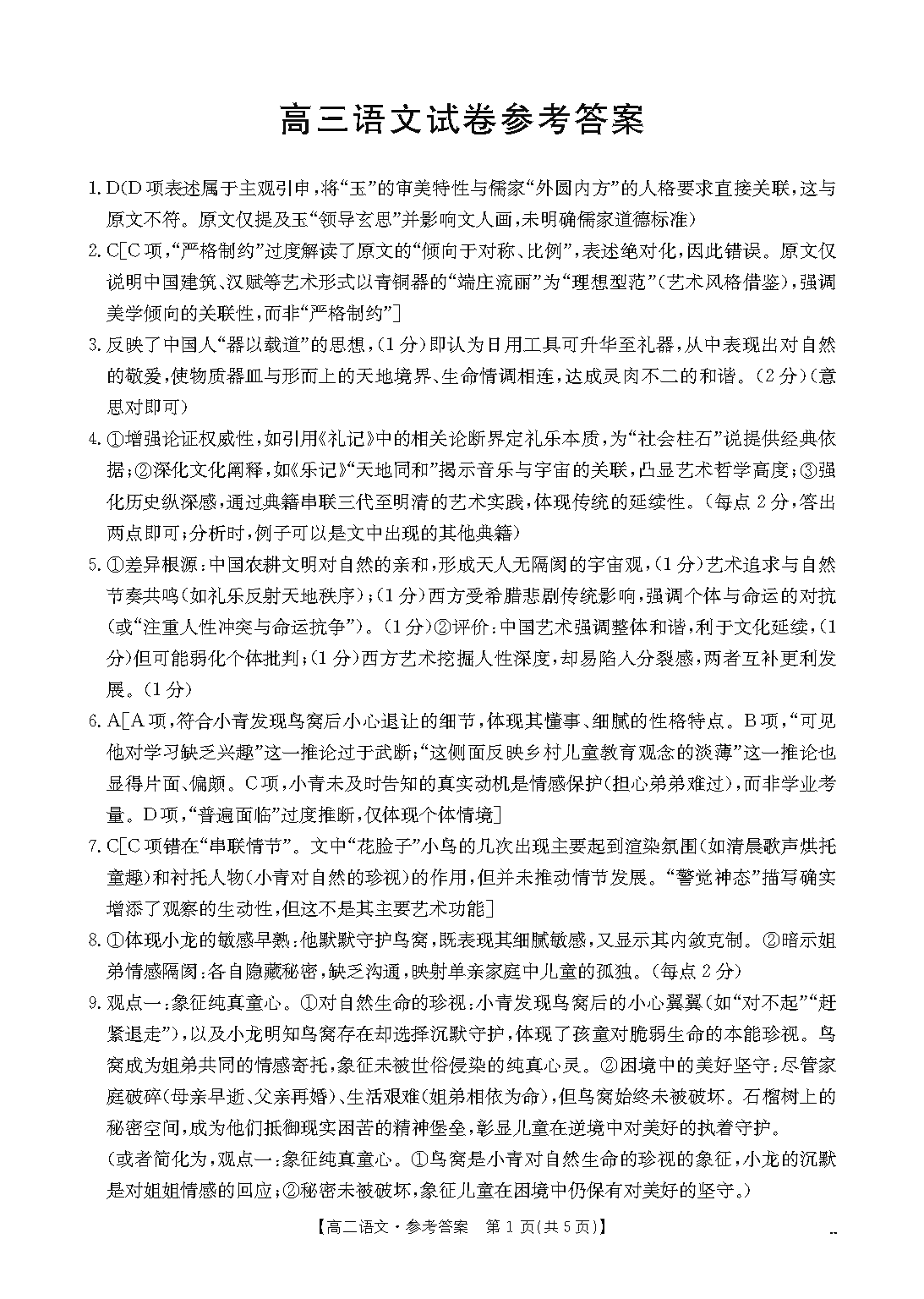 江西金太阳2025-2026学年高三上学期9月联考语文试题及答案