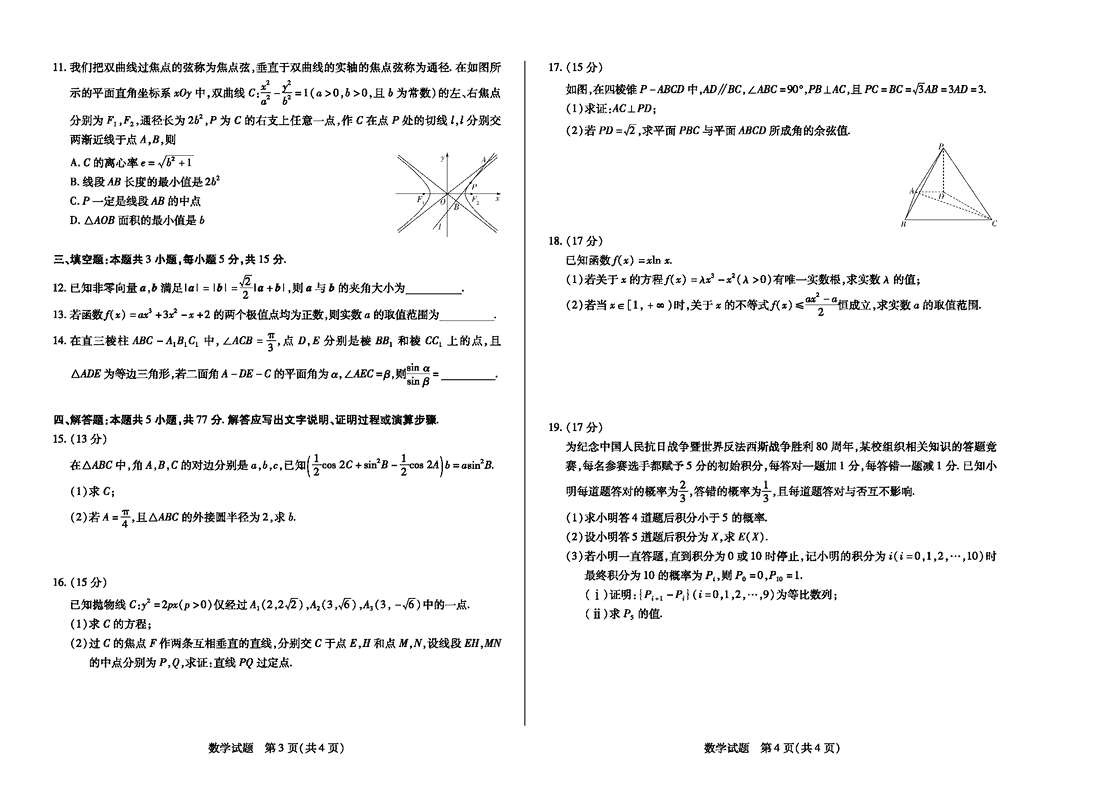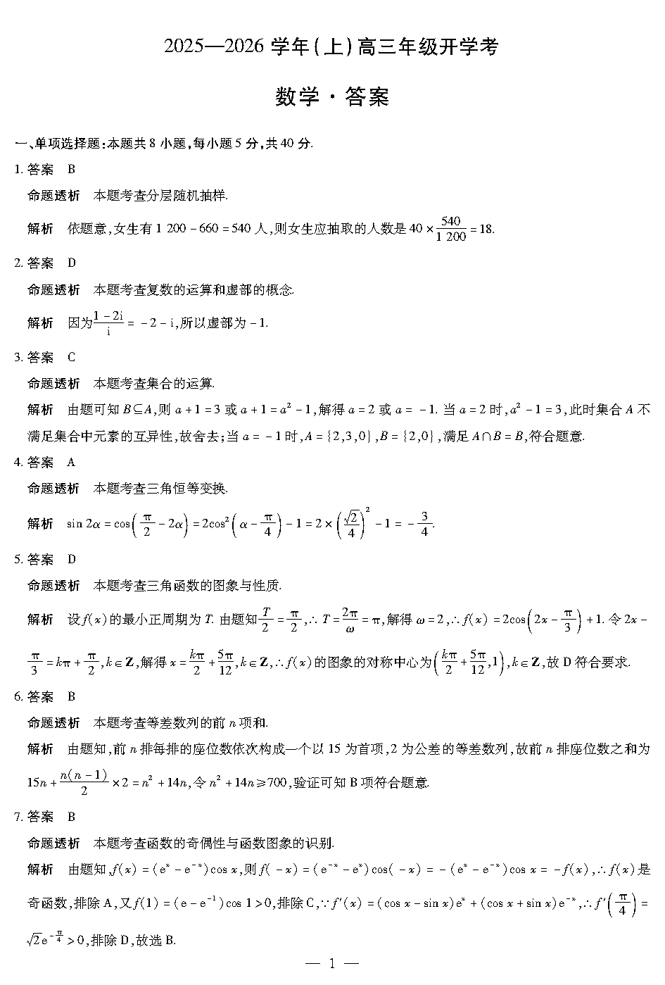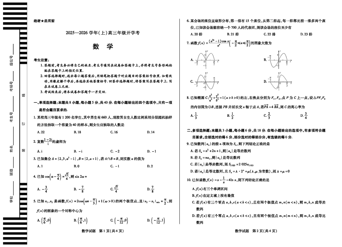 河南天一大联考2025-2026学年高三上学期开学考数学试题及答案