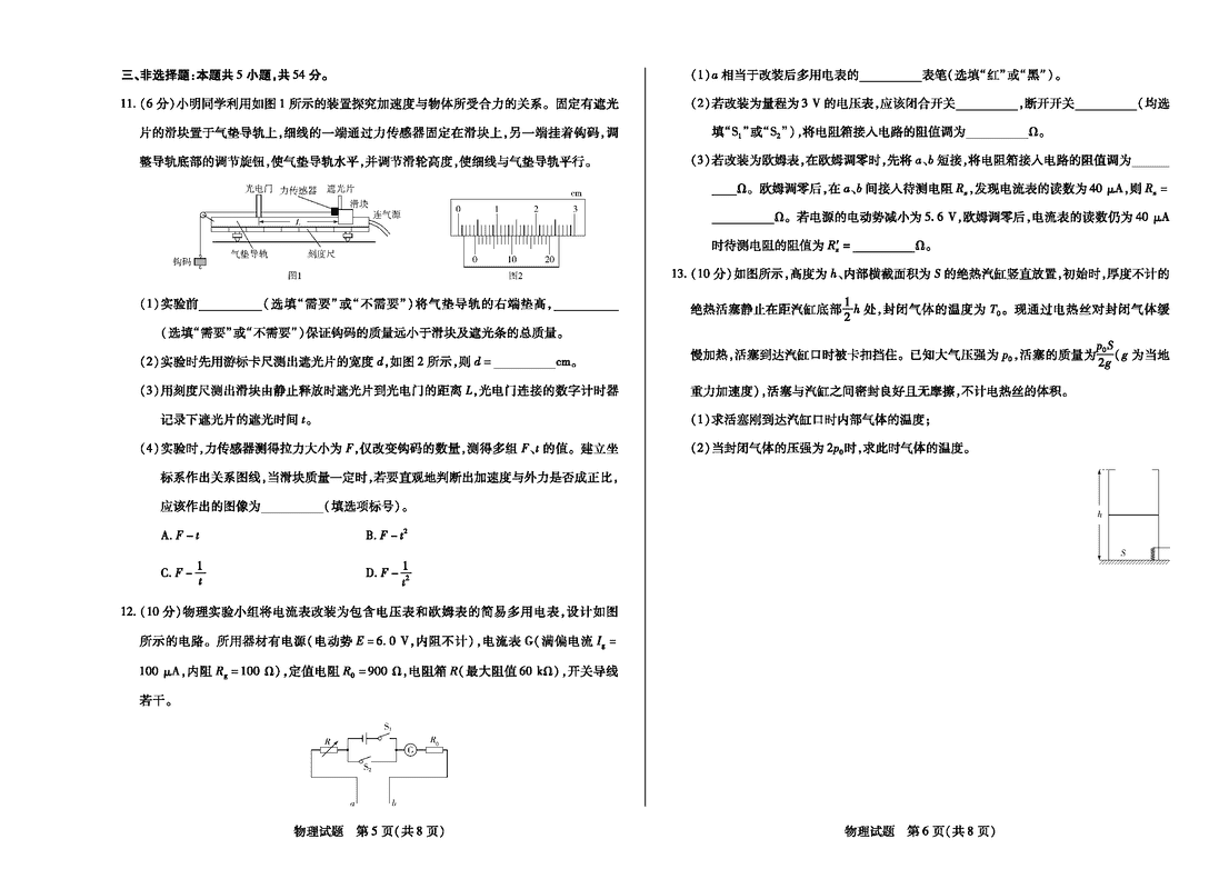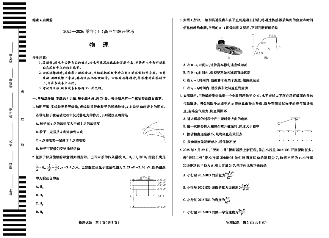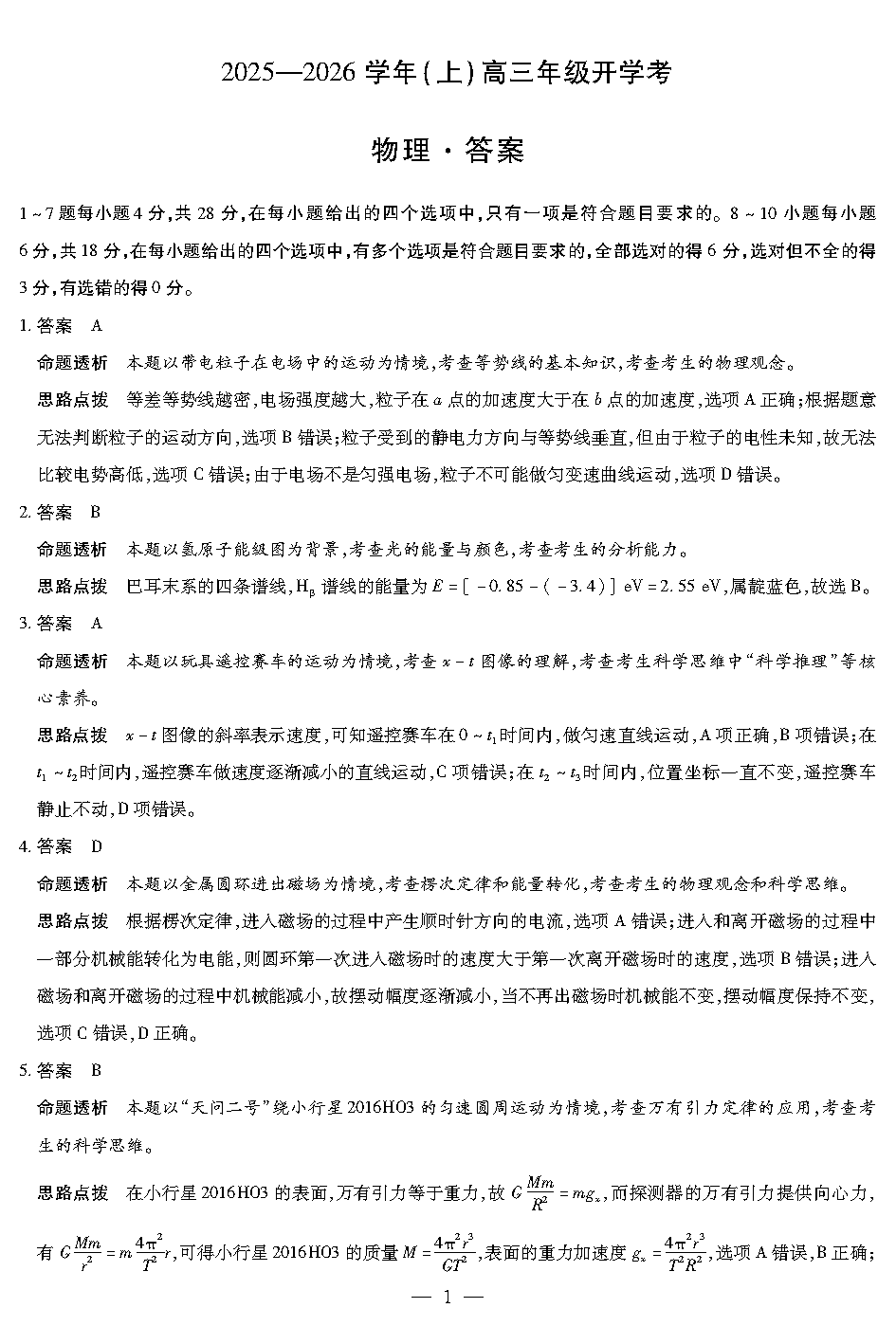 河南天一大联考2025-2026学年高三上学期开学考物理试题及答案