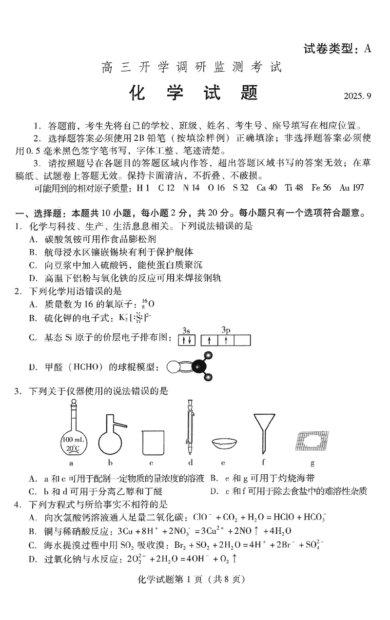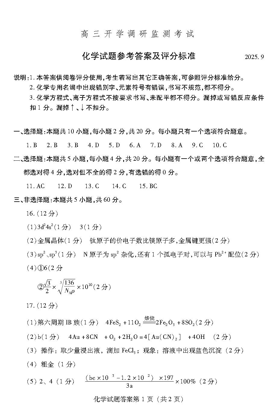 山东潍坊2026届高三开学调研监测化学试题及答案 时间:2025-09-09 山东 理综试题 山东潍坊2026届高三开学调研监测化学考试已于近日开考,为方便考生考后及时查看考试情况,查漏补缺、弥补不足,本文整理了试题答案解析相关信息! 汇总:山东潍坊2026届高三开学调研监测考试试题及答案汇总 化学试题及答案解析