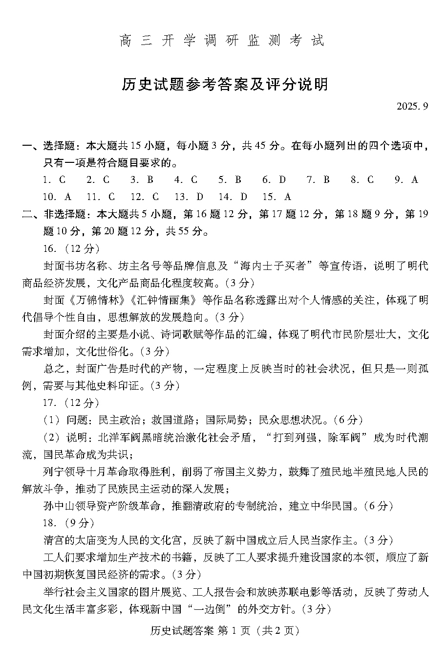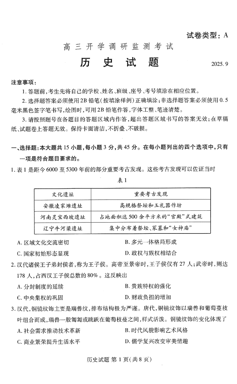 山东潍坊2026届高三开学调研监测历史试题及答案 时间:2025-09-09 山东 文综试题 山东潍坊2026届高三开学调研监测历史考试已于近日开考,为方便考生考后及时查看考试情况,查漏补缺、弥补不足,本文整理了试题答案解析相关信息! 汇总:山东潍坊2026届高三开学调研监测考试试题及答案汇总 历史试题及答案解析