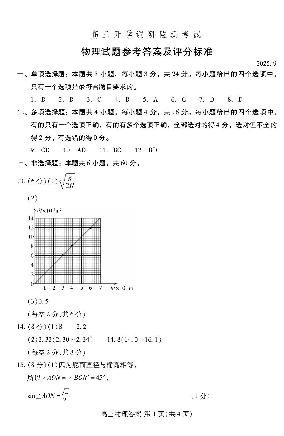 山东潍坊2026届高三开学调研监测物理考试已于近日开考,为方便考生考后及时查看考试情况,查漏补缺、弥补不足,本文整理了试题答案解析相关信息!