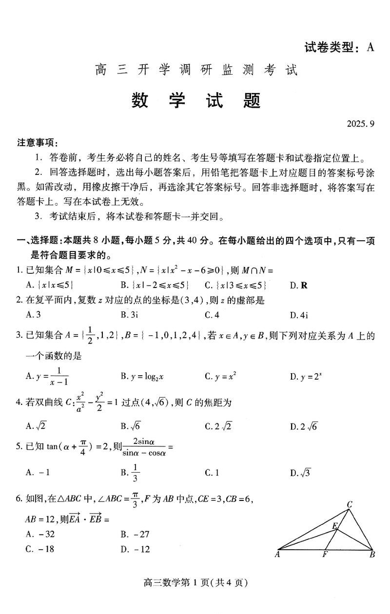 山东潍坊2026届高三开学调研监测数学试题及答案 时间:2025-09-09 山东 数学试题 山东潍坊2026届高三开学调研监测数学考试已于近日开考,为方便考生考后及时查看考试情况,查漏补缺、弥补不足,本文整理了试题答案解析相关信息! 汇总:山东潍坊2026届高三开学调研监测考试试题及答案汇总 数学试题及答案解析