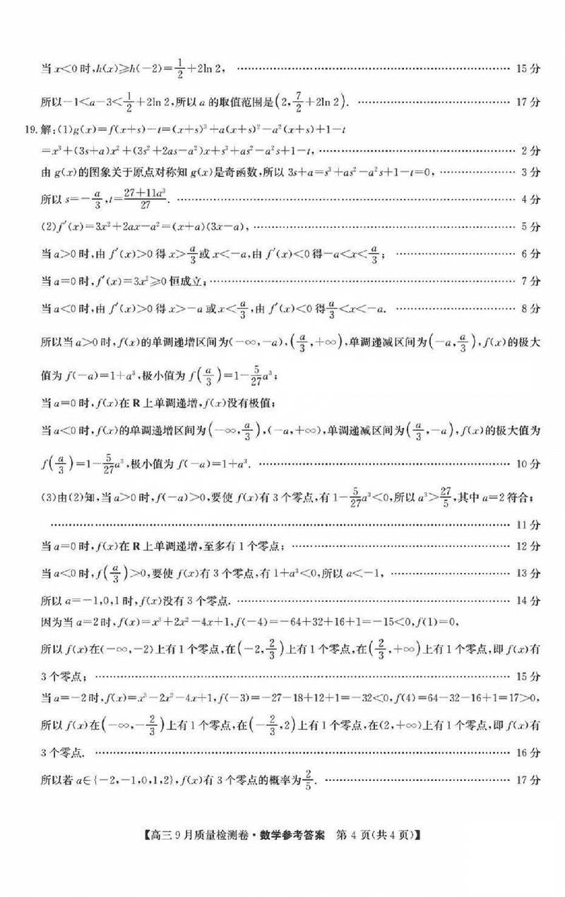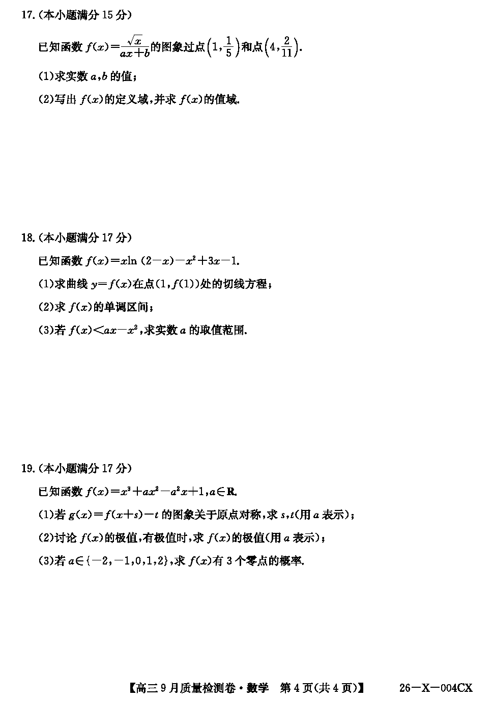 山西三晋卓越联盟2025-2026学年高三9月质检数学试题及答案