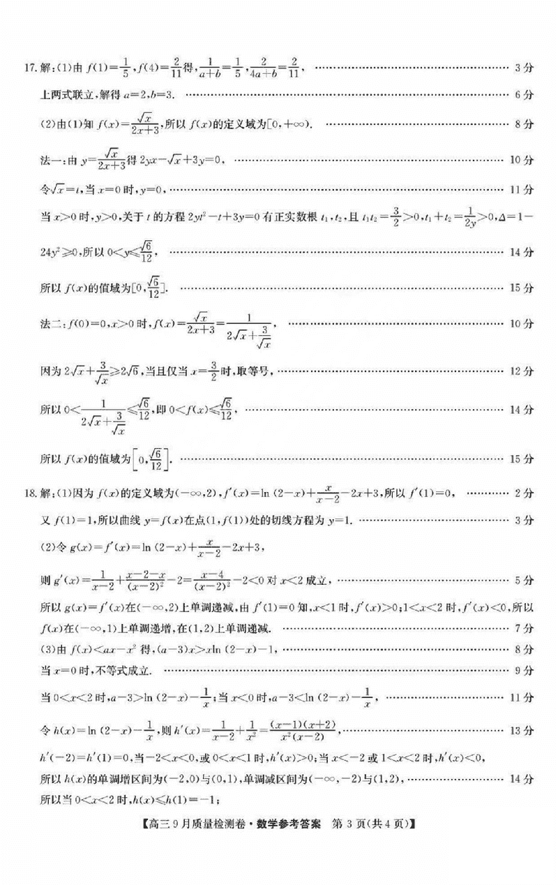 山西三晋卓越联盟2025-2026学年高三9月质检数学考试已于近日开考,为方便考生考后及时查看考试情况,查漏补缺、弥补不足,本文整理了试题答案解析相关信息!