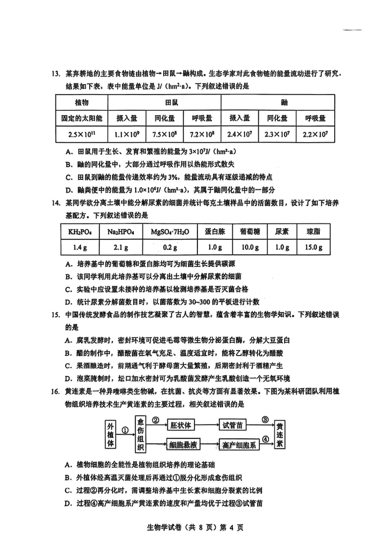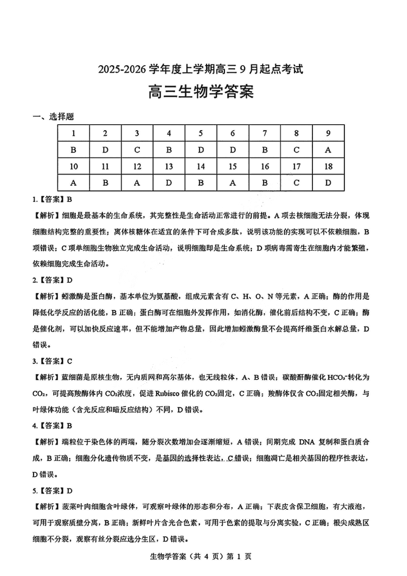 湖北楚天协作体2025-2026学年高三上9月起点生物考试已于近日开考,为方便考生考后及时查看考试情况,查漏补缺、弥补不足,本文整理了试题答案解析相关信息!