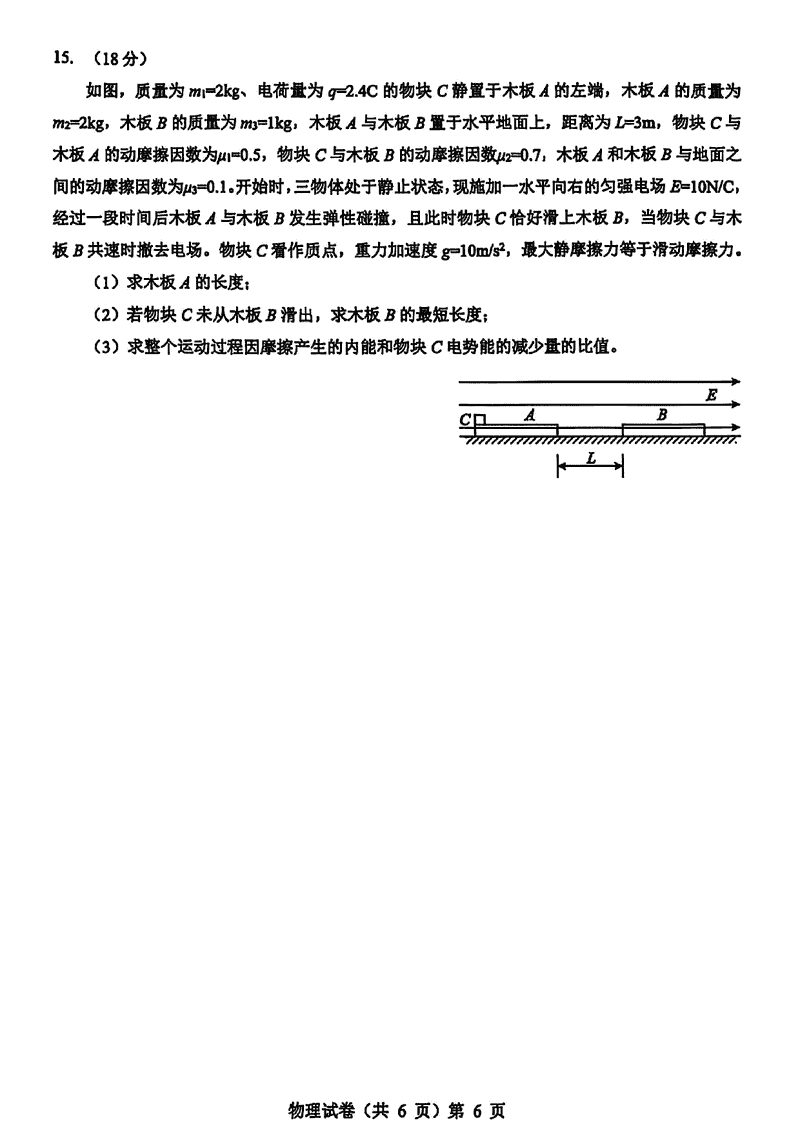 湖北楚天协作体2025-2026学年高三上9月起点物理试题及答案
