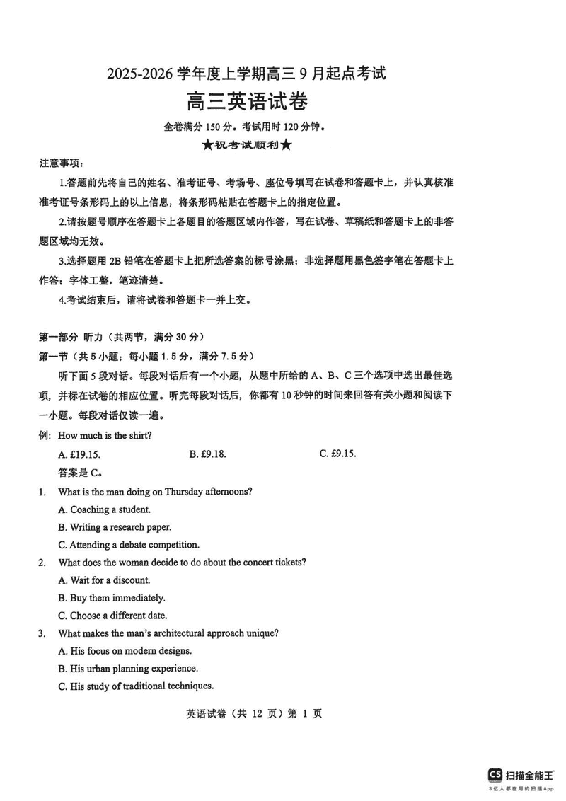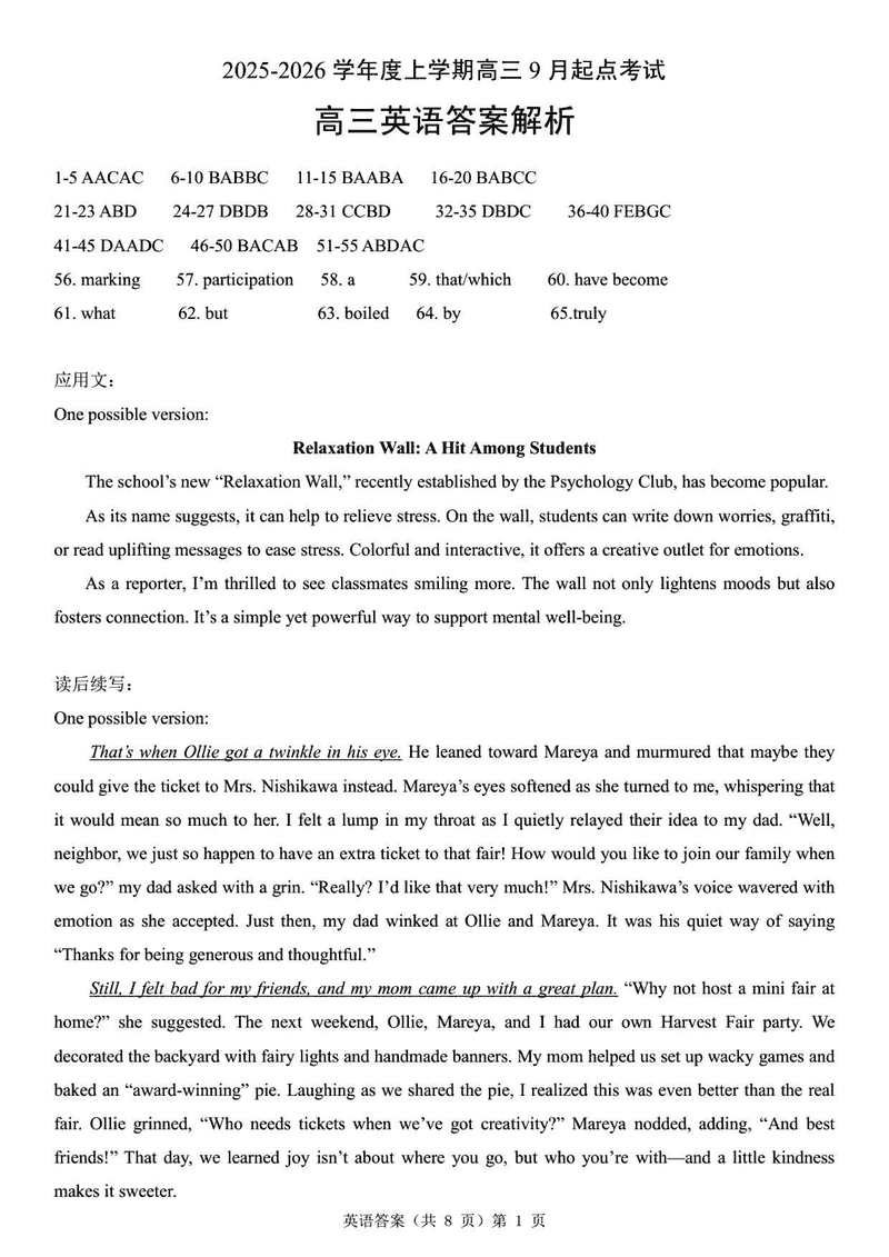 湖北楚天协作体2025-2026学年高三上9月起点英语考试已于近日开考,为方便考生考后及时查看考试情况,查漏补缺、弥补不足,本文整理了试题答案解析相关信息!