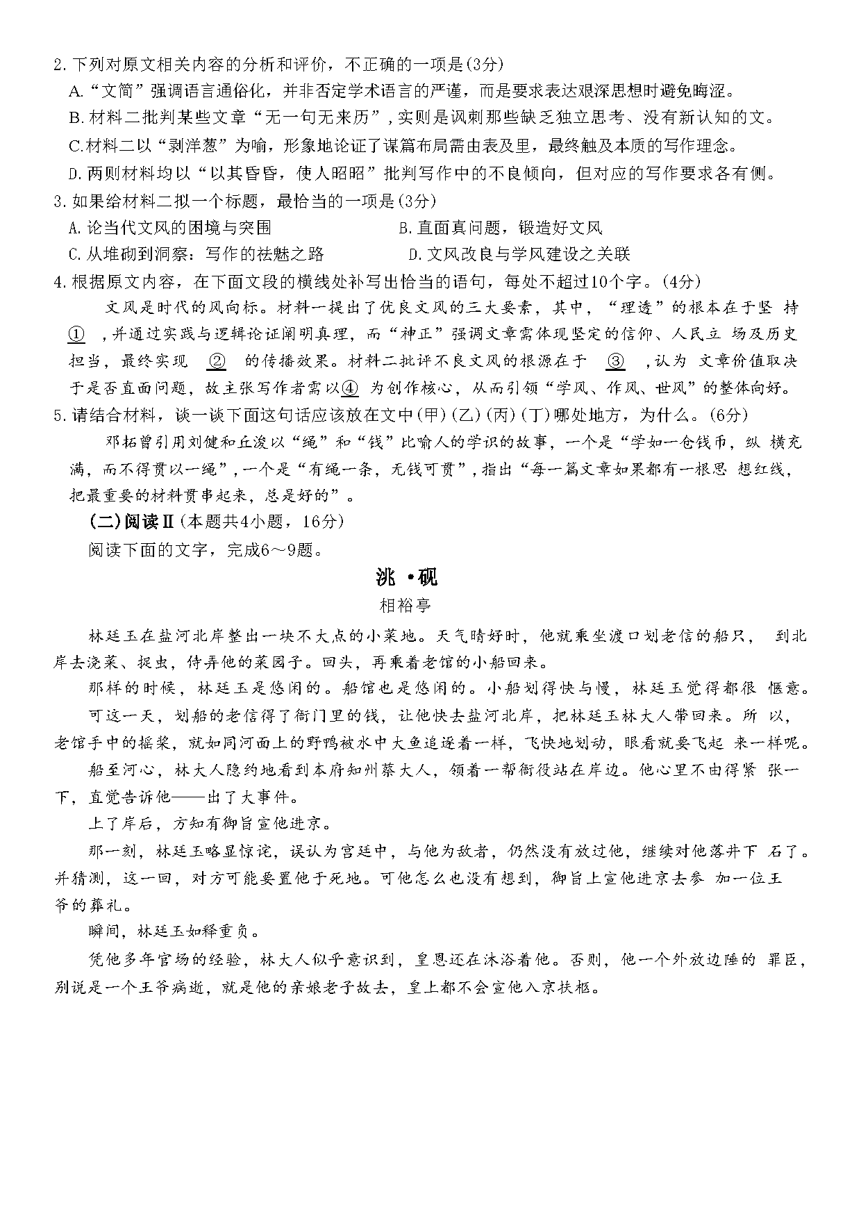 山东 语文试题