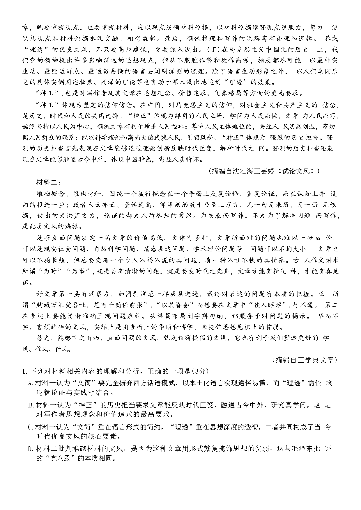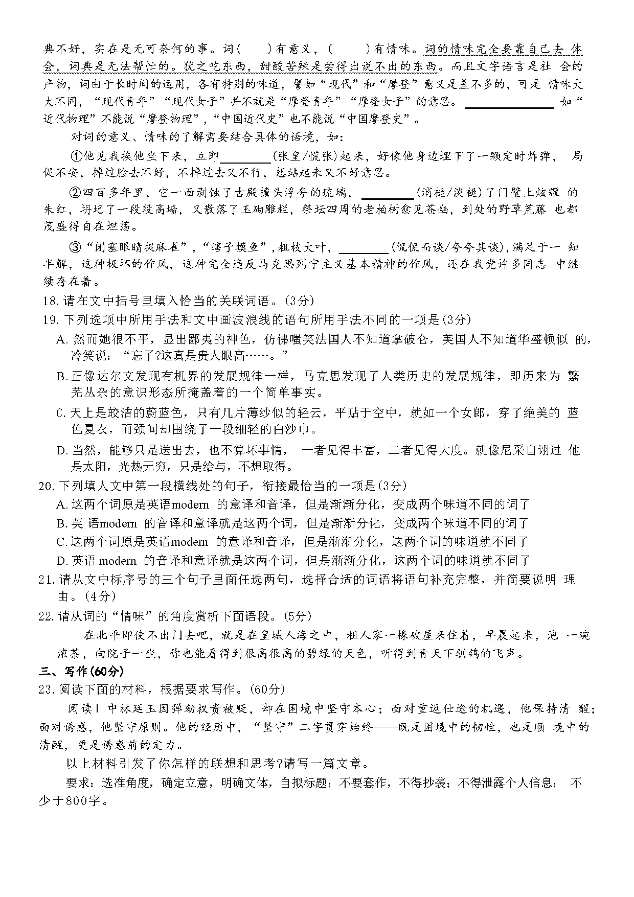 语文试题及答案解析