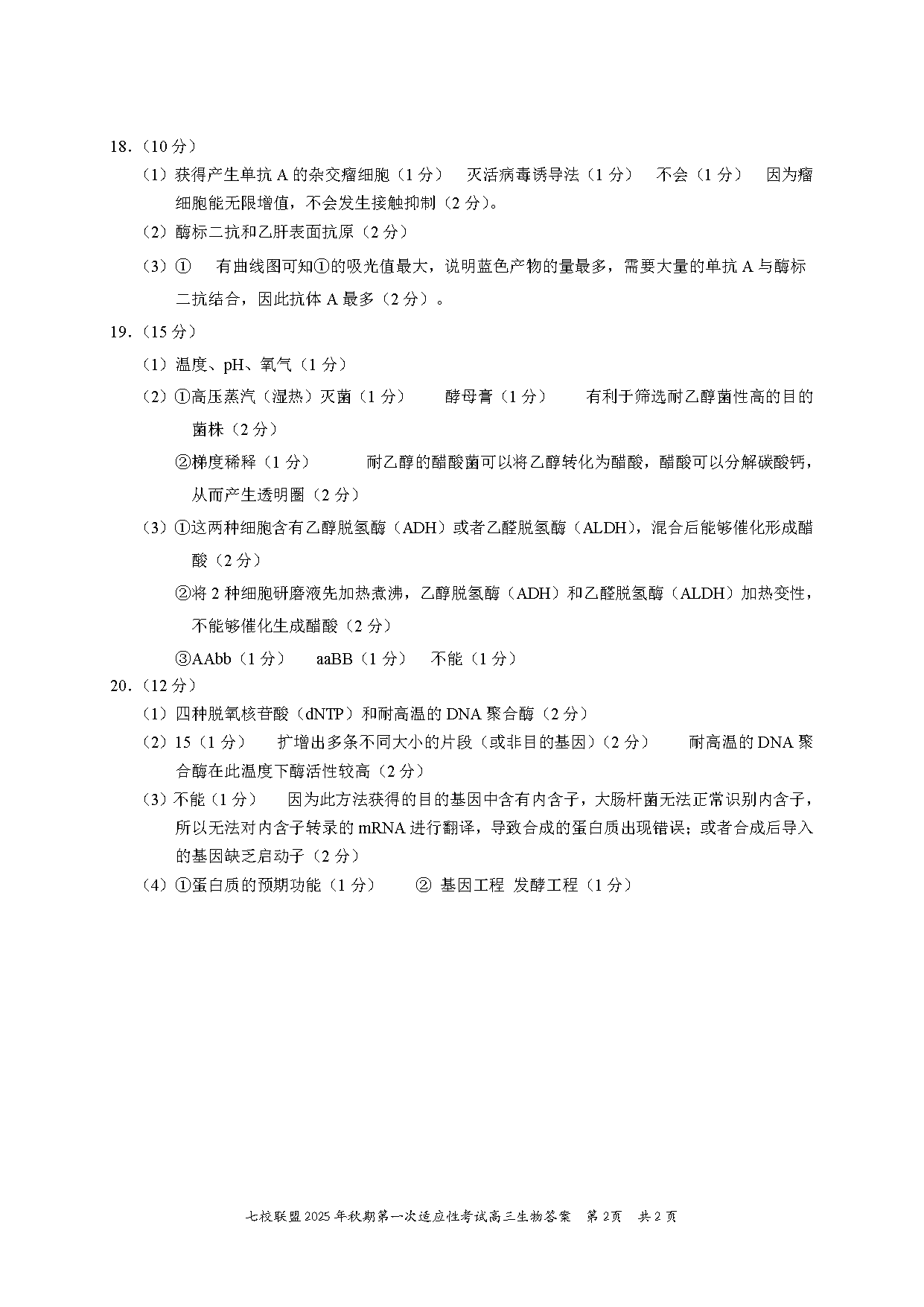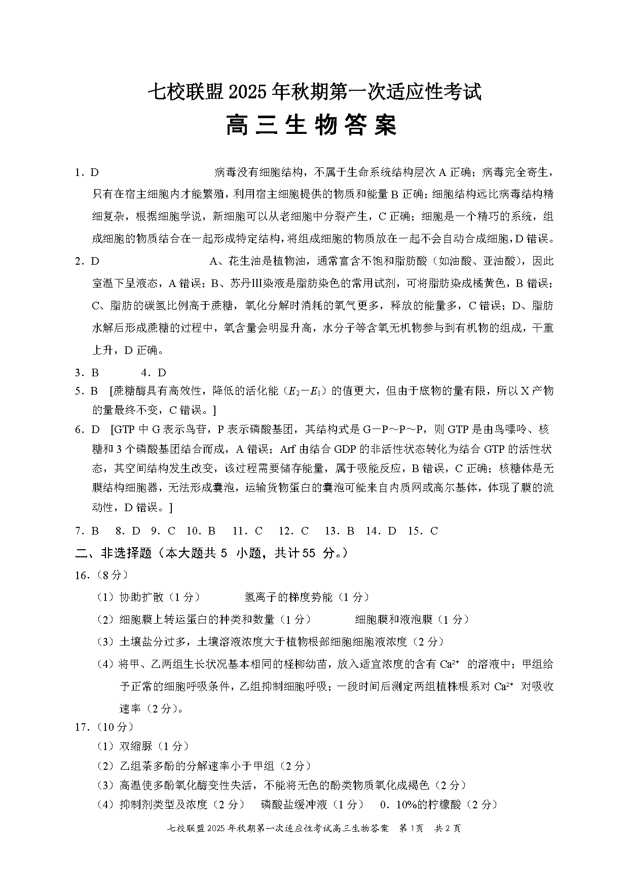 重庆七校联盟2025年高三秋期开学第一次适应性生物考试已于近日开考,为方便考生考后及时查看考试情况,查漏补缺、弥补不足,本文整理了试题答案解析相关信息!