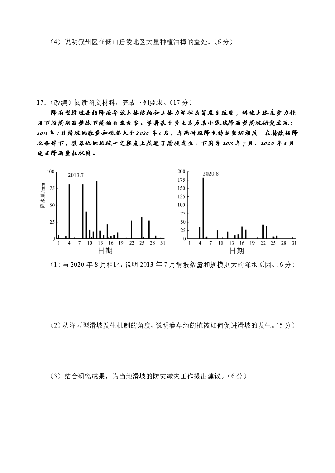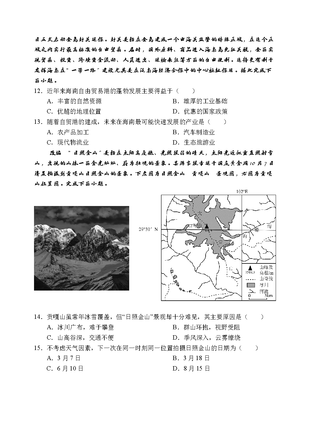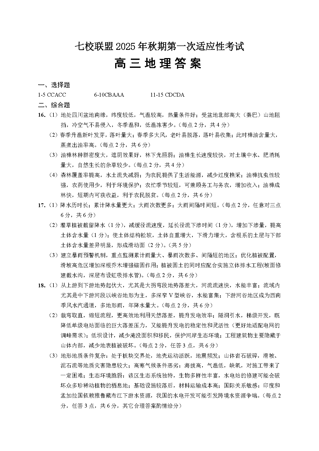 重庆七校联盟2025年高三秋期开学第一次适应性地理试题及答案