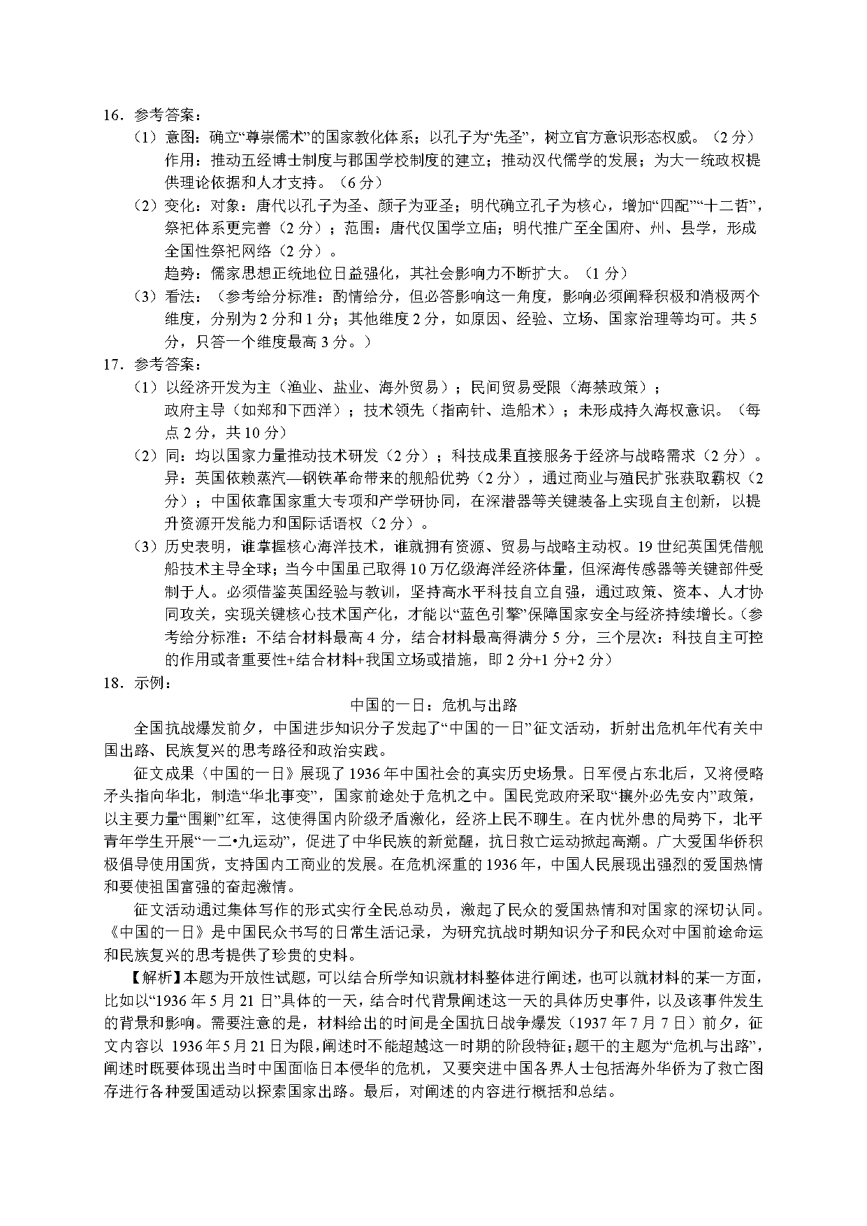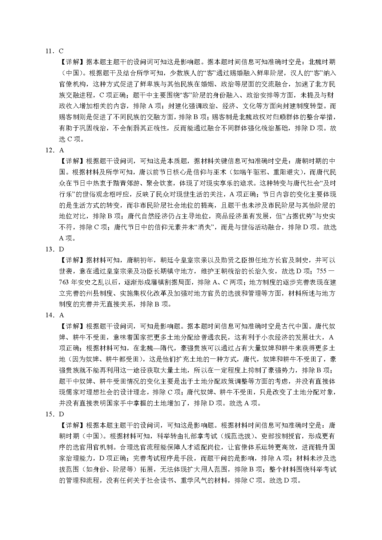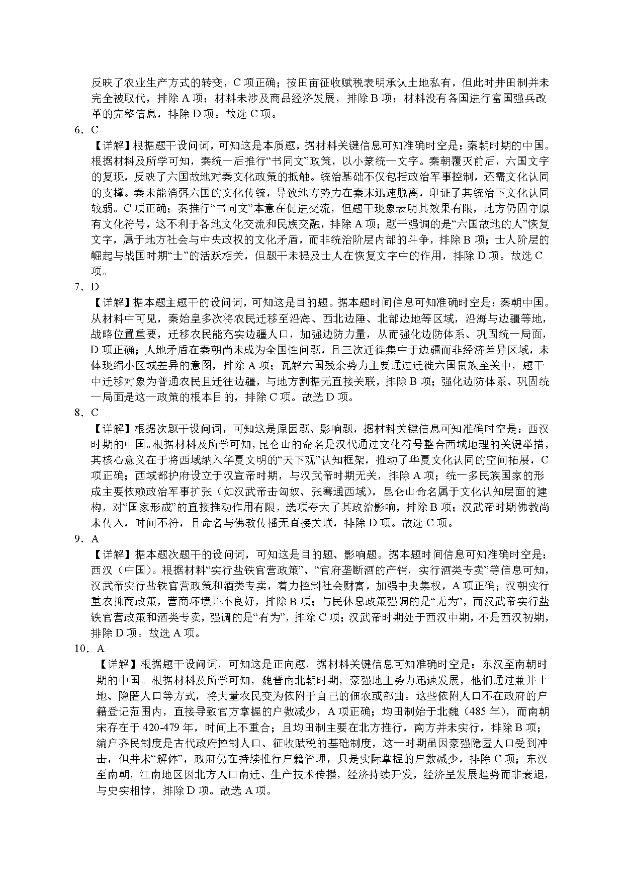 历史试题及答案解析