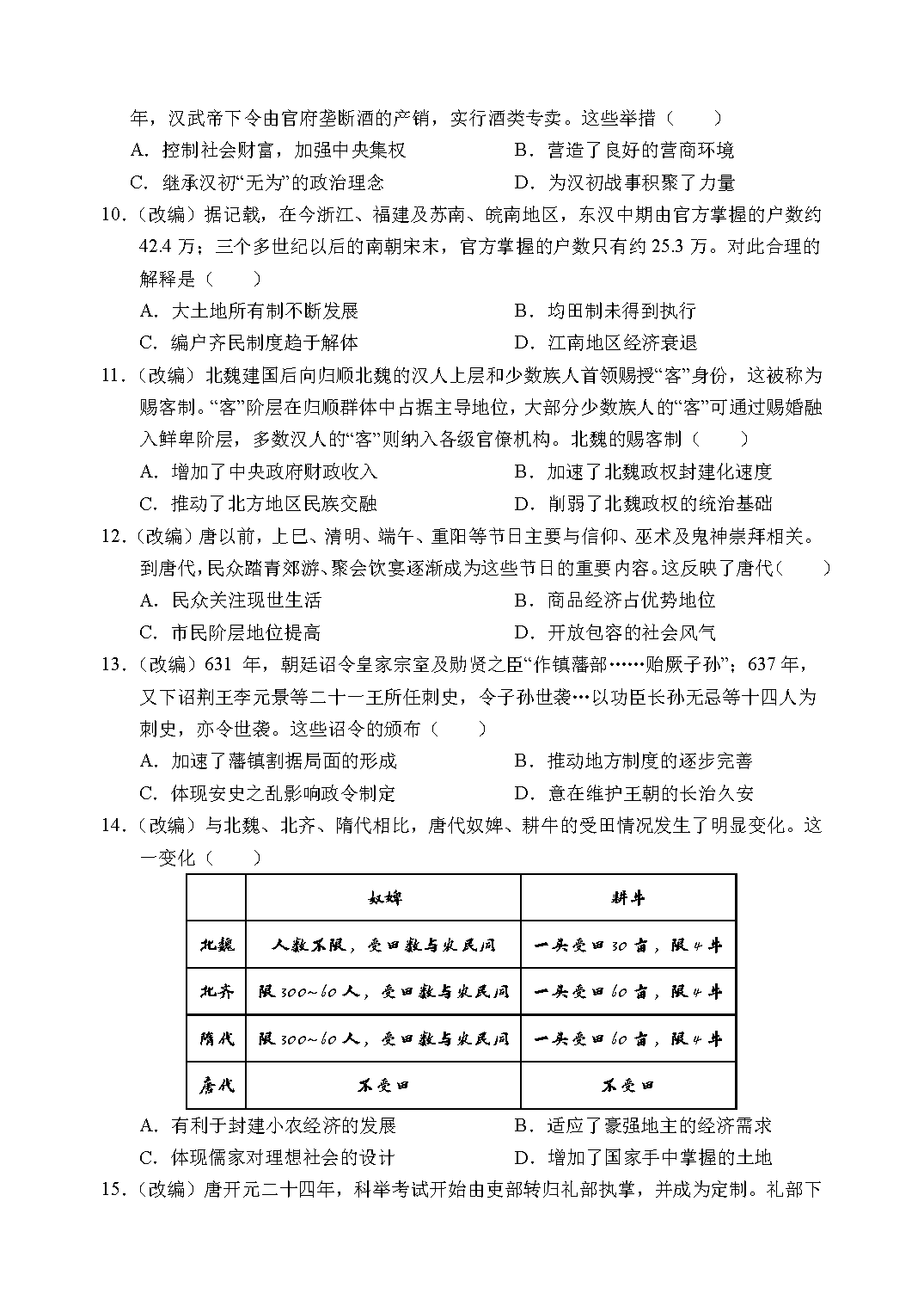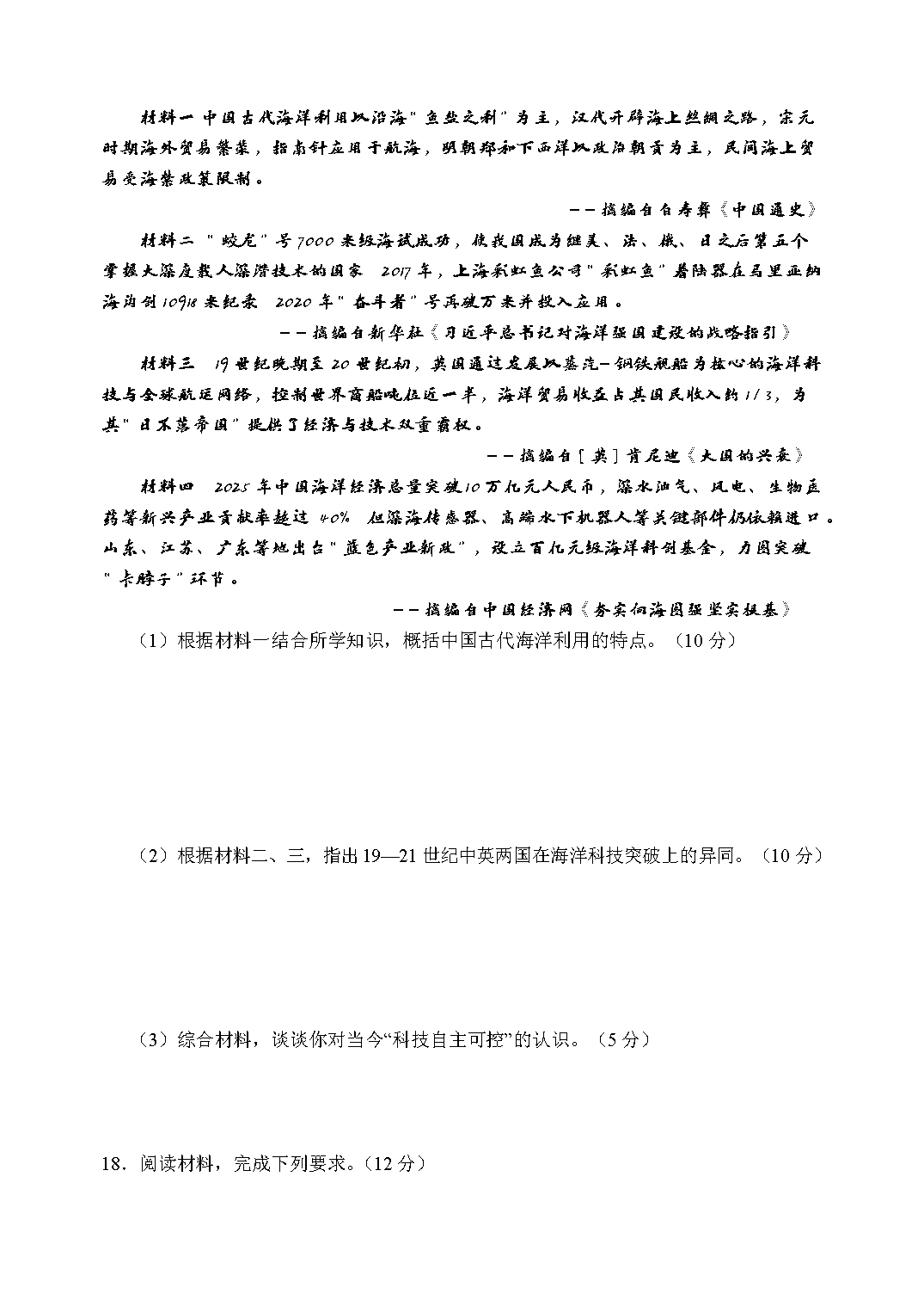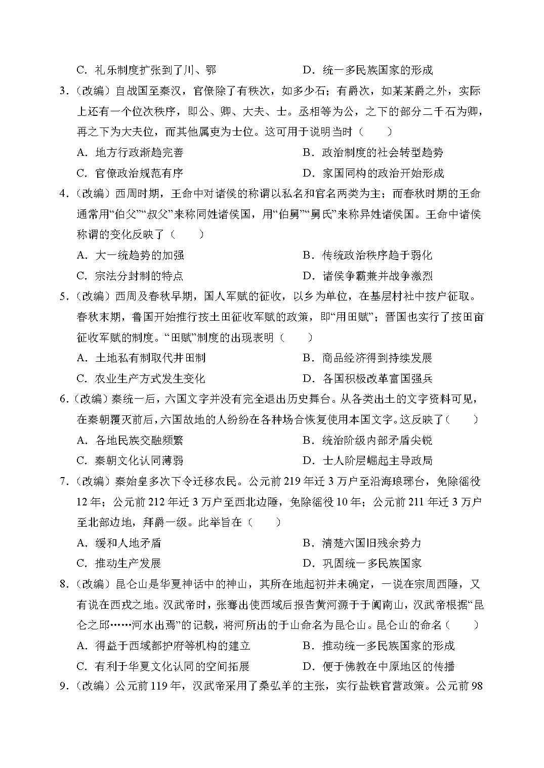 历史试题及答案解析