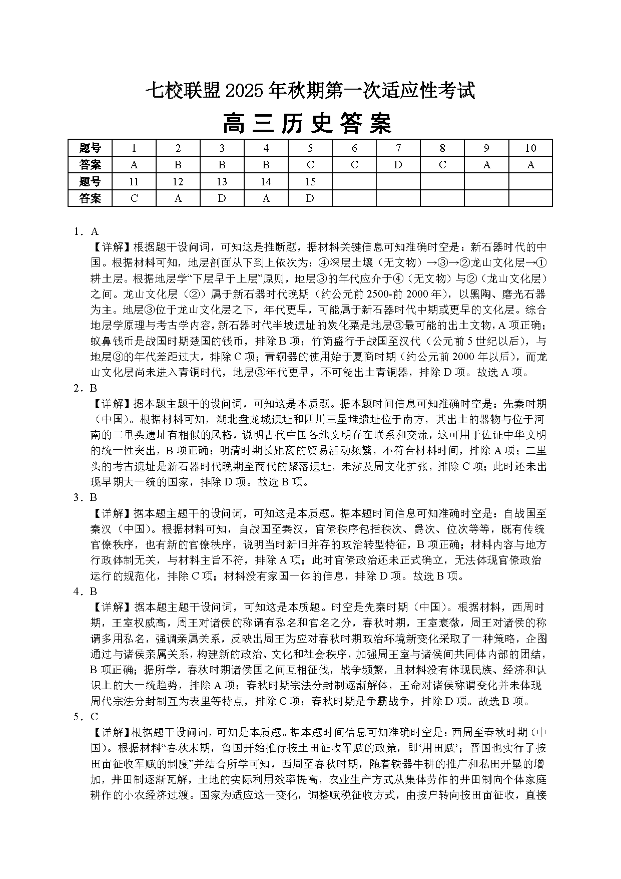 重庆七校联盟2025年高三秋期开学第一次适应性历史考试已于近日开考,为方便考生考后及时查看考试情况,查漏补缺、弥补不足,本文整理了试题答案解析相关信息!