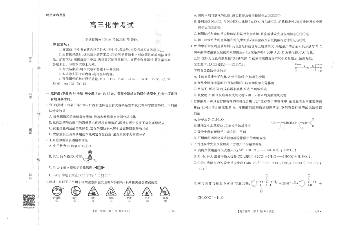 广西金太阳2026届9月高三联考化学试题及答案 时间:2025-09-09 广西 理综试题 广西金太阳2026届9月高三联考化学考试已于近日开考,为方便考生考后及时查看考试情况,查漏补缺、弥补不足,本文整理了试题答案解析相关信息! 汇总:广西金太阳2026届9月高三联考试题及答案汇总 化学试题及答案解析