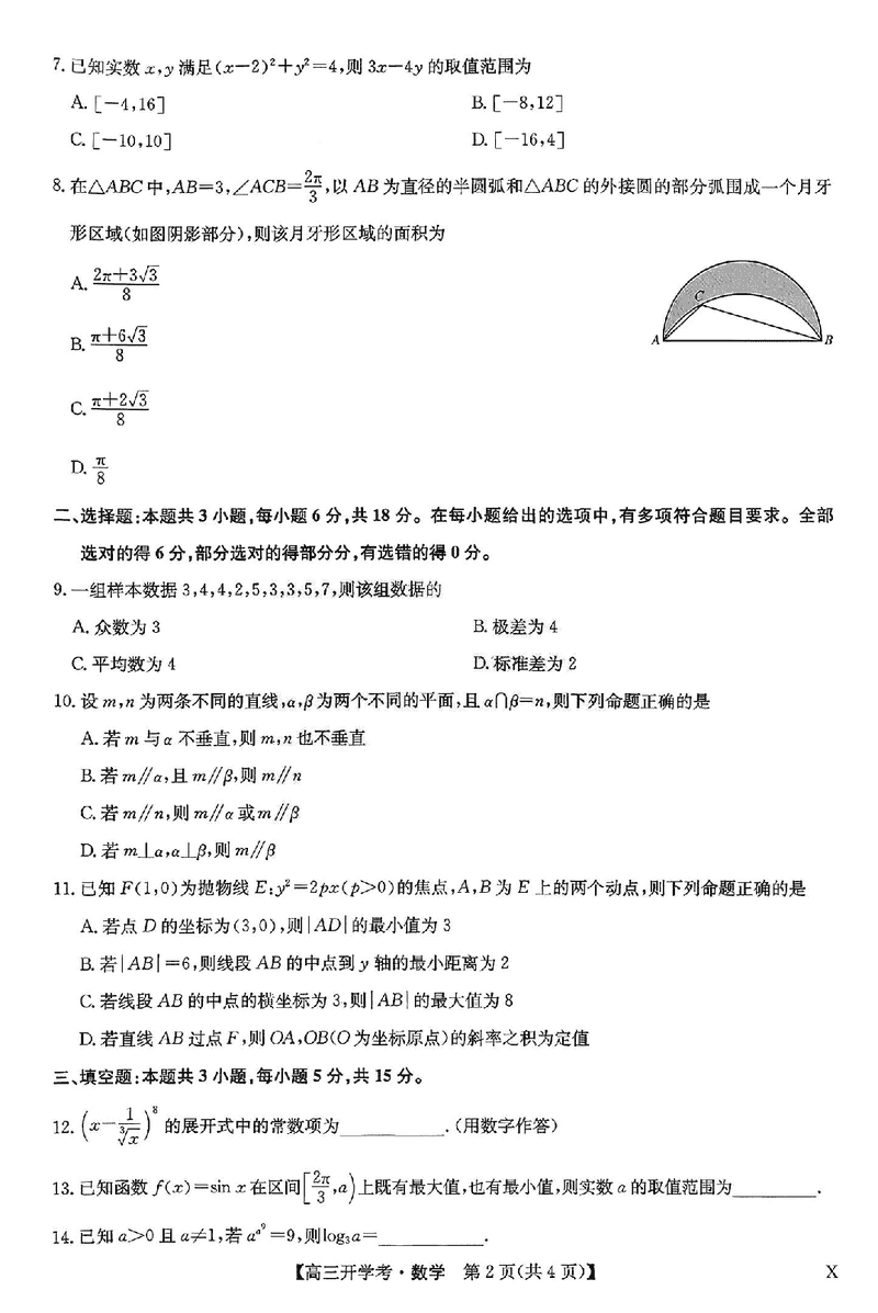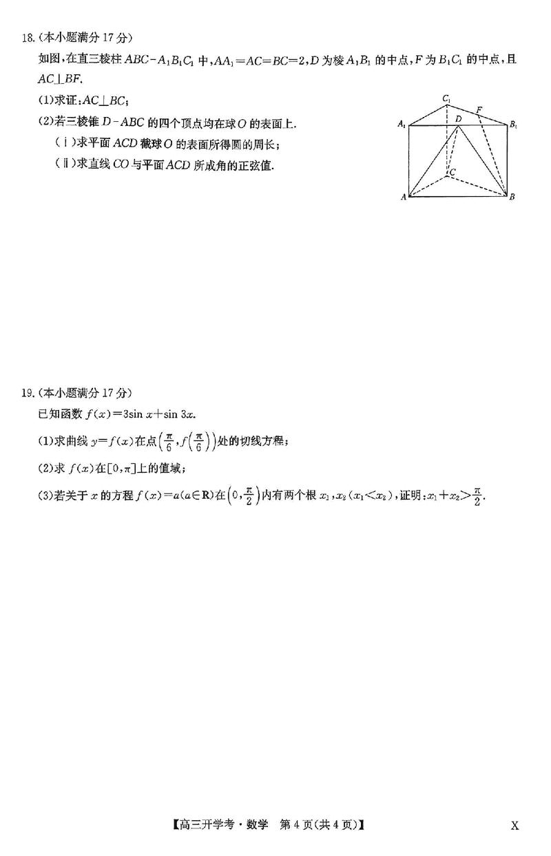 河南九师联盟2026届高三上学期9月联考数学试题及答案