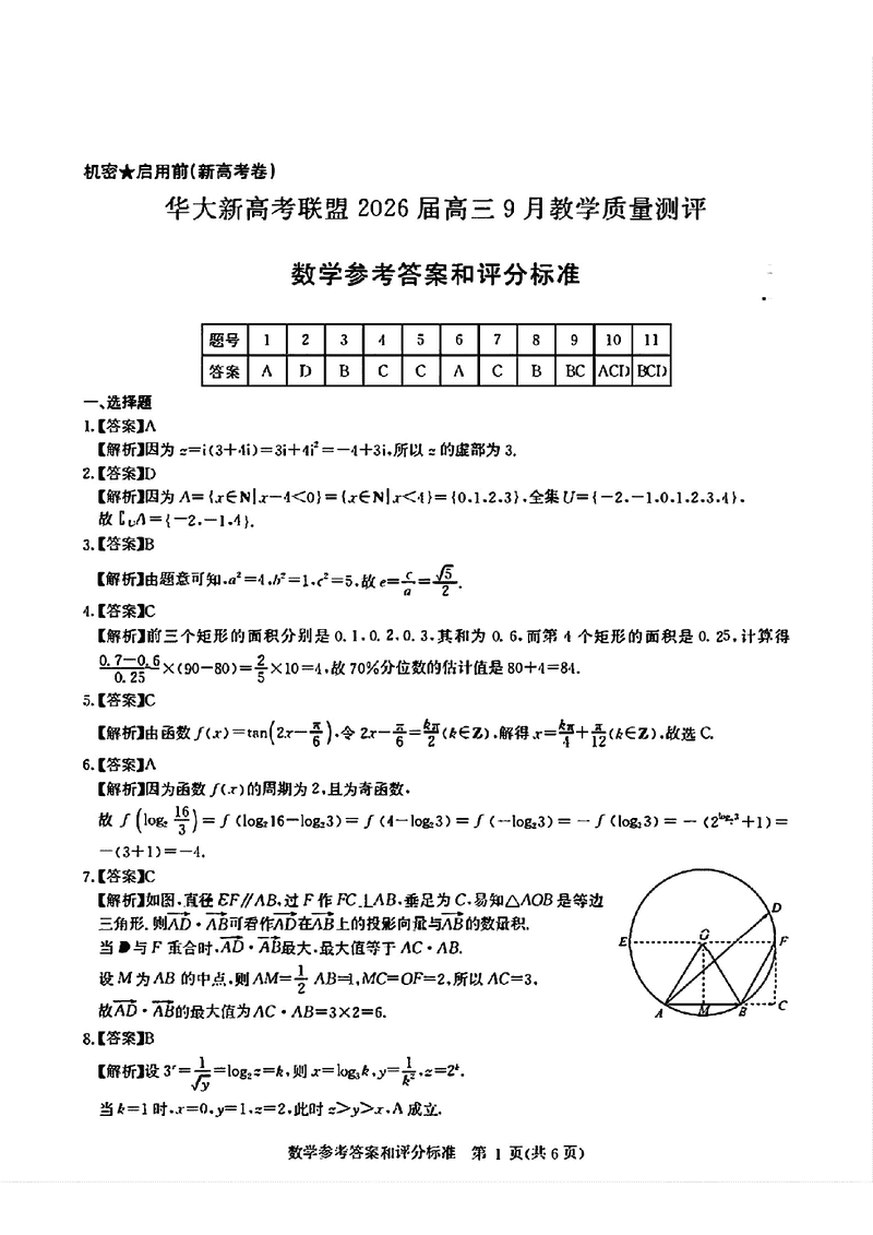 华大新高考联盟2026届高三9月教学质量测评数学考试已于近日开考,为方便考生考后及时查看考试情况,查漏补缺、弥补不足,本文整理了试题答案解析相关信息!