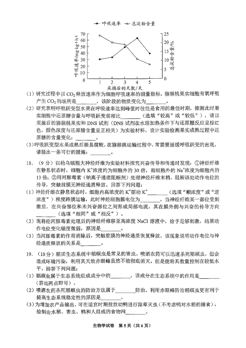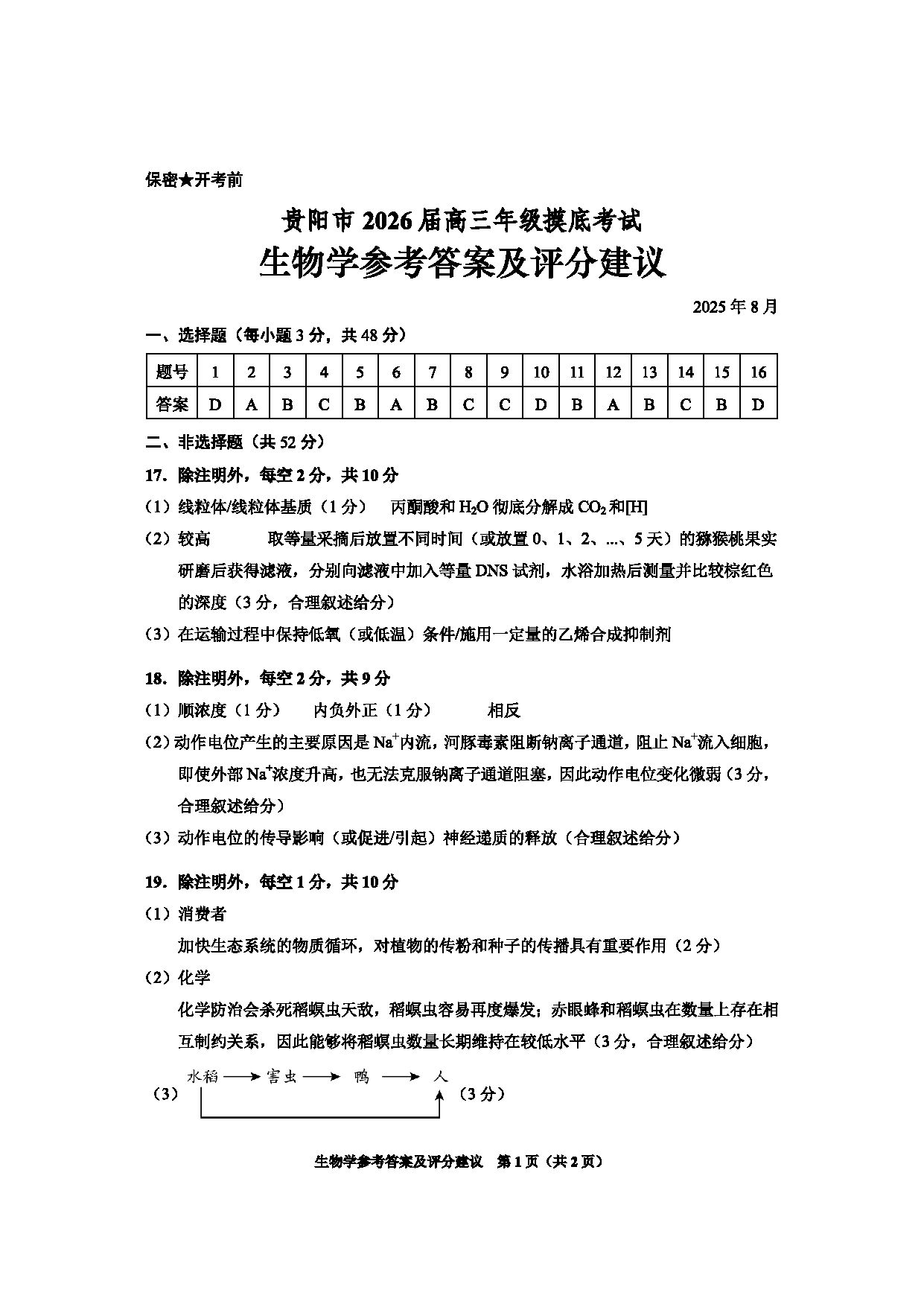 贵阳市、铜仁市2026届高三9月摸底考生物试题及答案