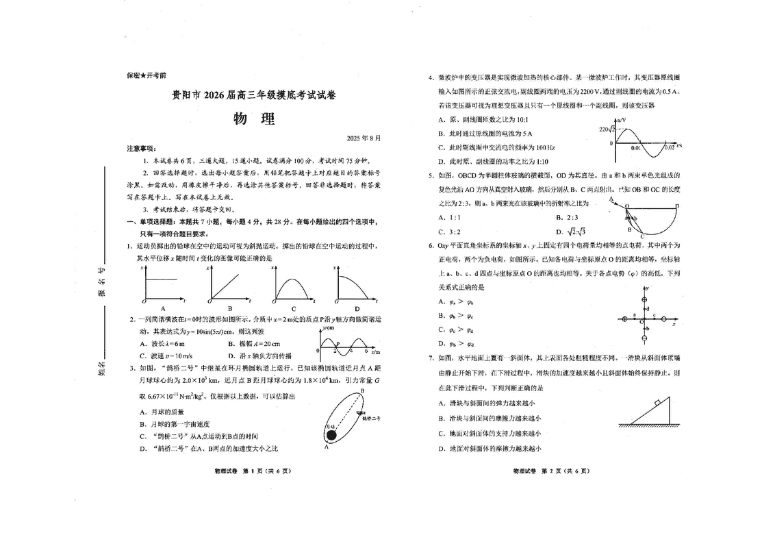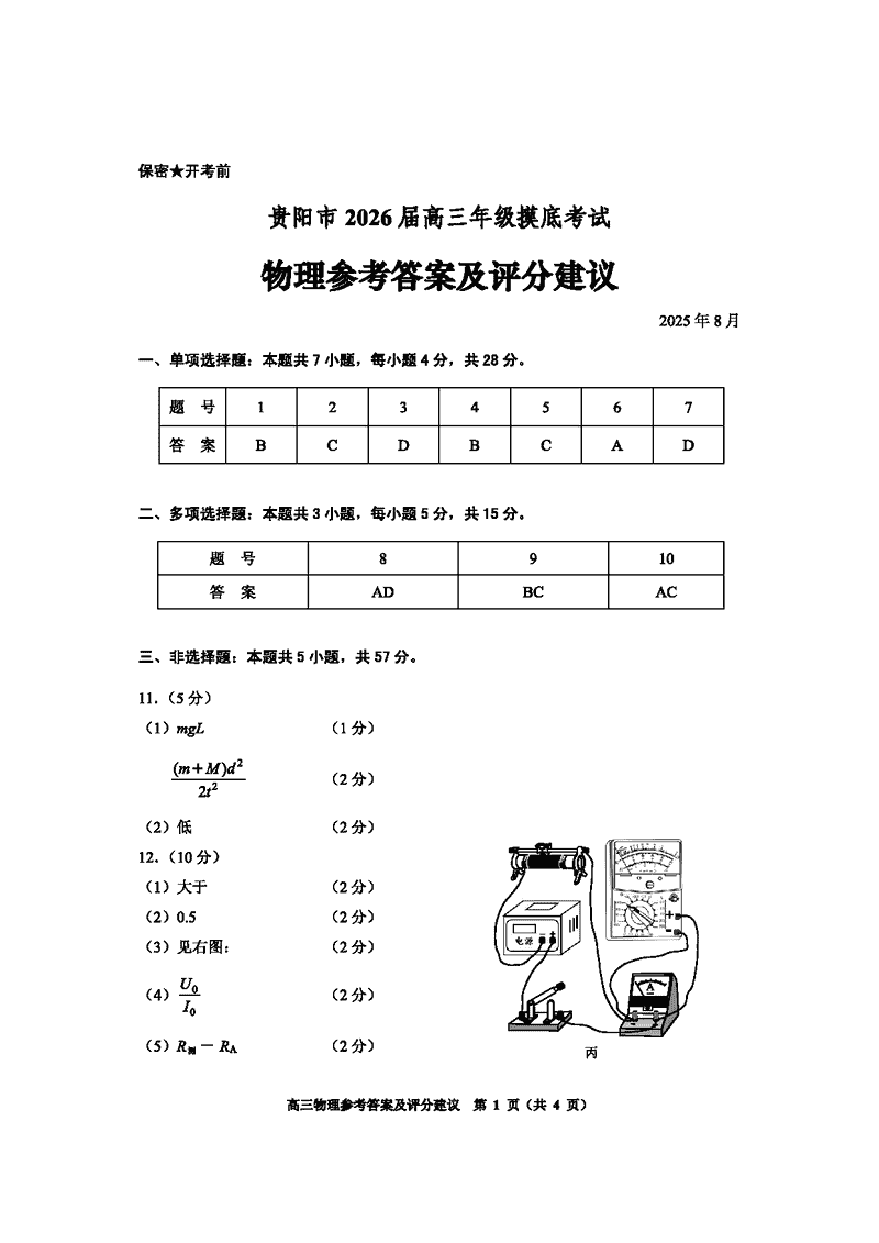 贵阳市、铜仁市2026届高三9月摸底考物理考试已于近日开考,为方便考生考后及时查看考试情况,查漏补缺、弥补不足,本文整理了试题答案解析相关信息!