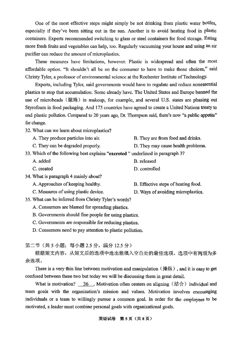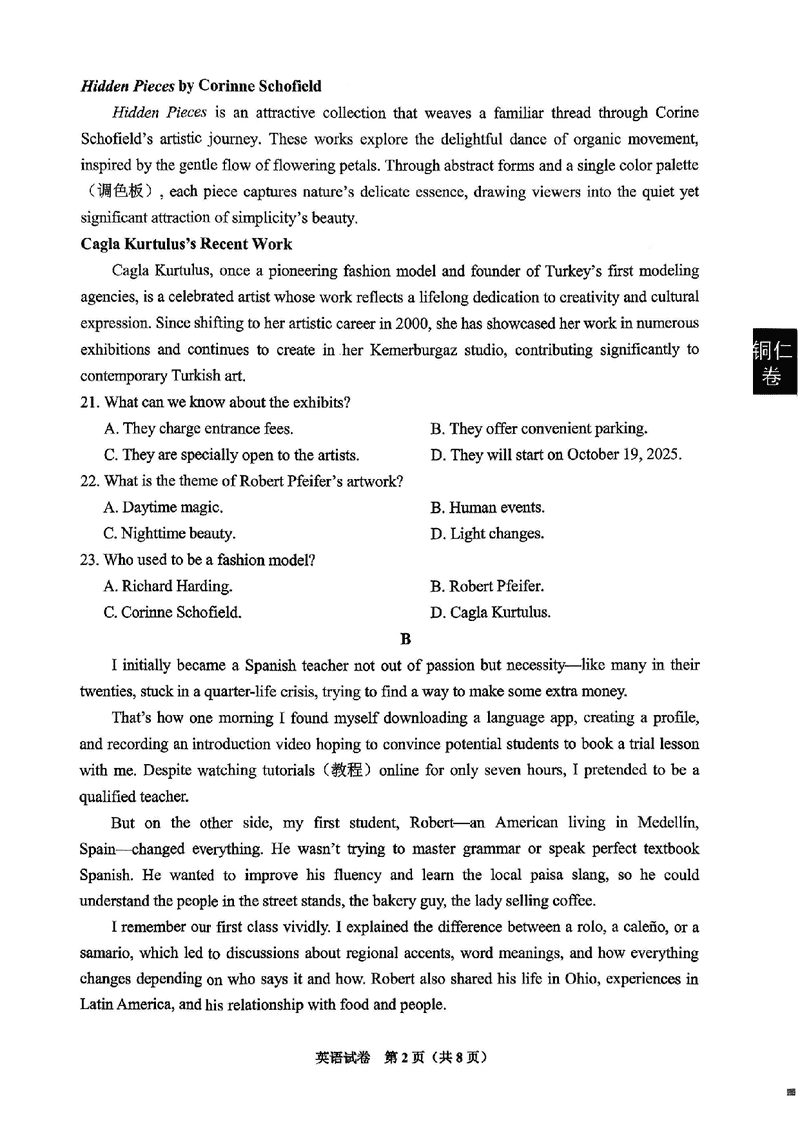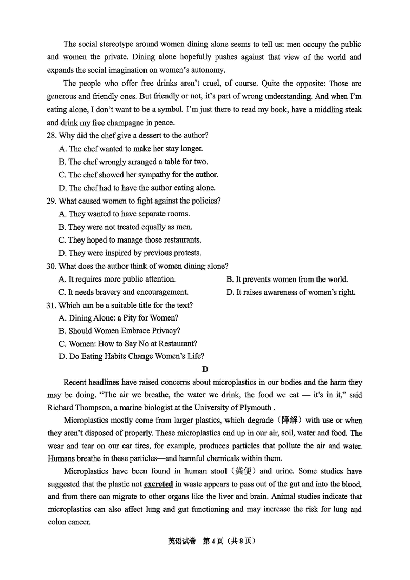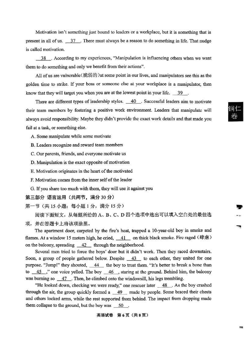 贵阳市、铜仁市2026届高三9月摸底考英语试题及答案